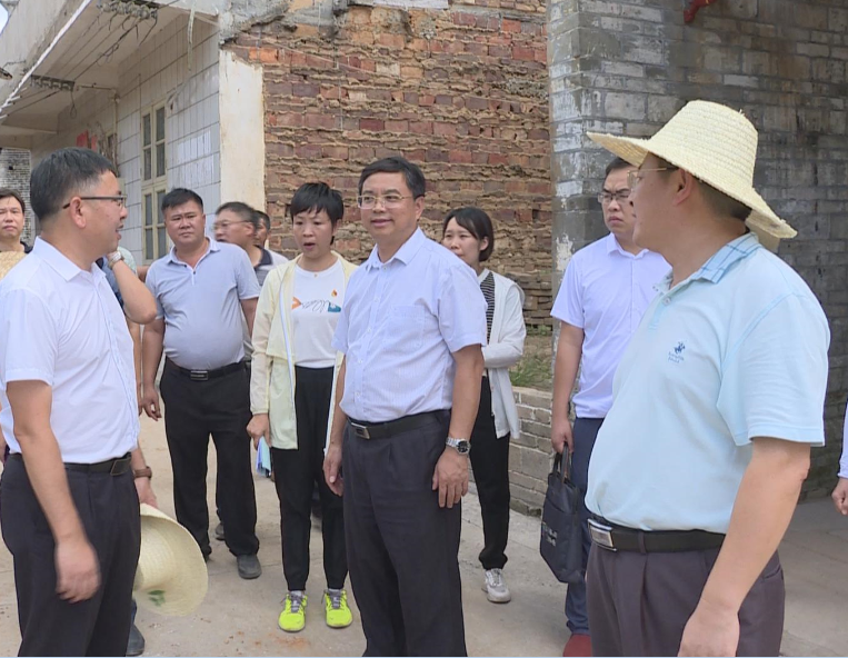 沈河民一行先后来到坪石镇管埠村、武阳司村查看,听取有关负责人关于华南教育历史研学基地(坪石)项目建设的进展情况汇报,并就存在的问题,研究解决方案,推进项目建设。