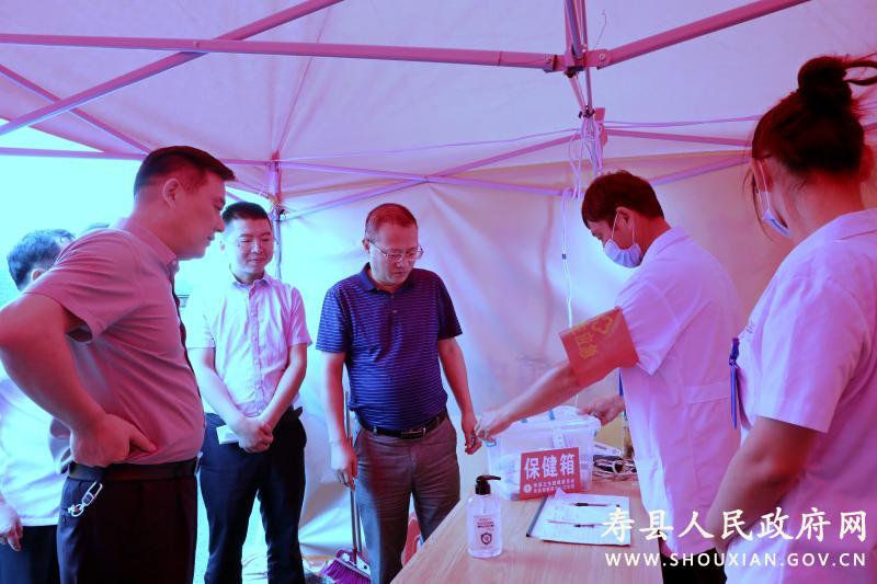 7月24日上午,县卫健委主任涂满祖、副主任马克益深入寿春镇黄台村灾民安置点,查看寿春镇中心卫生院卫生工作站点,指导救灾防病工作,查看汛期易发疾病的防控措施落实情况,鼓励一线卫生工作者,发扬抗疫时的英勇顽强精神,不怕苦不怕累,坚决守护好人民群众的健康安全。