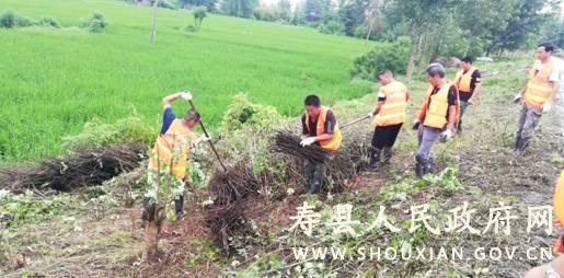 小集村民工正在清理背水坡杂物