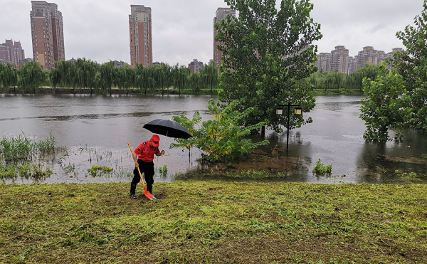 花山区社会公益组织联谊会广泛招募志愿者,马鞍山义警等公益组织踊跃报名。7月15日起,党员志愿者们参加慈湖河大堤防汛工作,并给社区防汛值守工作人员宣传普及基础防汛知识。从早到晚,他们穿着橡胶套鞋拿着铁锹、长杆排成一字型,一面检查慈湖河背水坡、迎水坡情况,边走边不时拨开眼前杂草或用铁锹戳一戳土地,探查隐患。