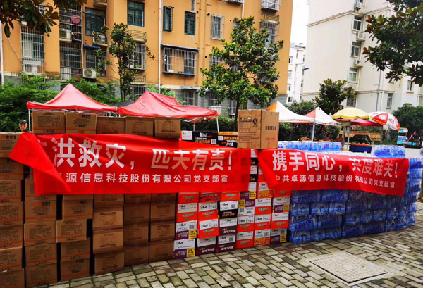 卓源党支部积极响应软件园党工委号召,第一时间向花山区政府捐赠抗洪物资,共计捐赠矿泉水280箱、方便面150箱、面包25箱、饼干45箱、巧克力派60箱,实际行动谱写了一曲“爱的赞歌”。