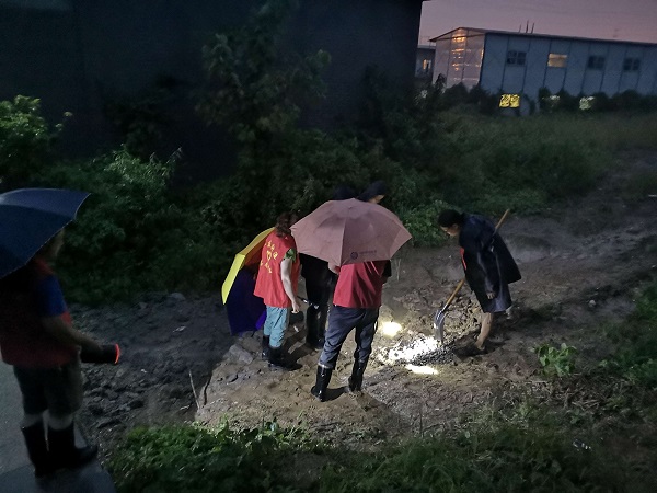部分河道因降雨导致河水暴涨,双板村一位村民不慎落水,村干部及时赶往现场,用木棒等工具帮助落水村民脱离险境。濮塘村多处农田被淹没,村党员服务队接到通知第一时间赶赴现场,下塘清理出渔网和水草,利用排水沟泄洪,最大限度挽救村民的农田等财产。并积极统计受灾情况,了解并帮助解决、处理种植户需求和难处。