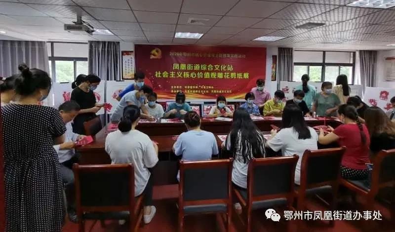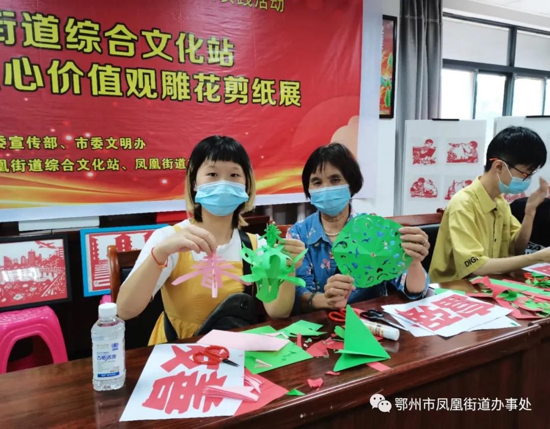 7月28日上午,凤凰街道综合文化站举办“文明传承,快乐剪纸”雕花剪纸展社会主义核心价值观主题教育实践活动。