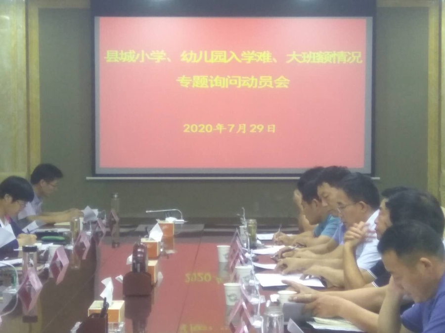 随着我县新型城镇化的快步发展,适龄学生大量涌入县城,县城小学、幼儿园入学难、大班额情况越来越受到社会关注,县人大常委会将此项问题列入年度监督工作重要议题,开展专题询问。7月29日上午,在县人大常委会会议室召开动员会,会议由县人大常委会副主任高正薇主持,副县长王艳参会并讲话,专题询问调研组成员、县教体局、县发改委等相关单位及城关镇负责人参加会议。
