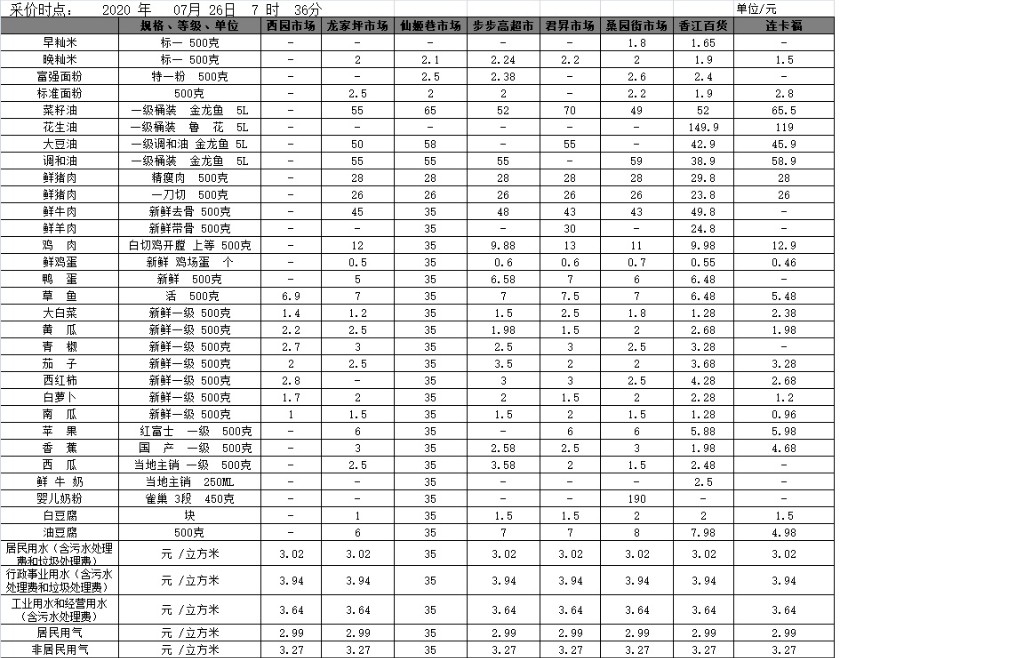 【物价】 2020-07-26衡阳市民生价格信息