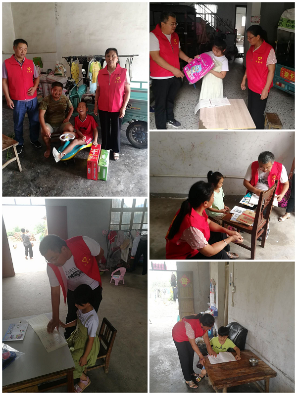 本次活动中,郑翔校长为组长,组织教师志愿者对学校辖区内留守儿童、残疾儿童提供服务,给生活困难的学生、残疾儿童带去了牛奶、书包等用品。教师志愿者们为孩子们提供了假期生活指南、学习指导,进行心理健康、安全等方面的辅导,让留守儿童、残疾儿童得到亲情上的关怀。