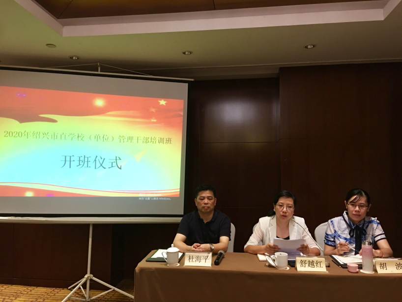 7月27日,教育培训中心承办的2020年绍兴市直学校(单位)管理干部培训班顺利开班,绍兴市教育局政治处主任舒越红,政治处副主任胡波,绍兴文理学院教师教育学院教授杜海平参加了开班仪式。