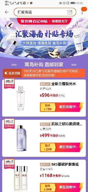 ? 同时,本次活动将开启“线上离岛补购”新业务模式,海南免税离岛补购飞猪官方旗舰店正式开门迎客。相较于此前针对来海南的游客“线上下单,机场提货”的购买模式,此次聚划算百亿补贴“线上离岛补购”是真正意义上首次实现“免税同质同价直邮到家”。只要是过往180天内乘飞机离开过海南的游客,都有资格参加此次“线上离岛补购”,通过“聚划算百亿补贴?汇聚海南”专场活动购买各大国际品牌商品,消费者可以享受到非常优惠的价格,补购额度将累计入个人年度限购额度中。“线上离岛补购”将通过本次活动,进一步促使国内市场需求释放,有效激发内地游客将“海外购”转化为“海南购”。