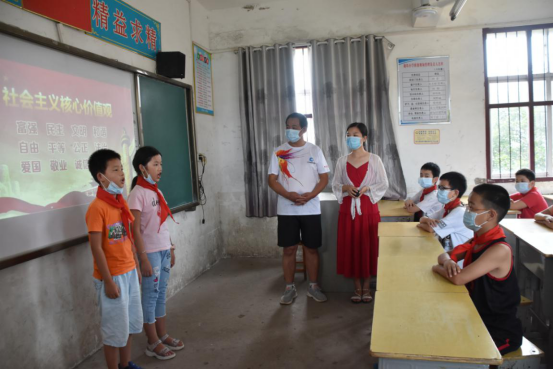 7月30日,谢埠小学开展了社会主义核心价值观主题教育活动,首先老师向同学们宣讲了什么是社会主义核心价值观,从国家、社会、公民三个层次进行解读,同学们进一步理解了社会核心价值观的丰富内涵。接下来同学们大声朗读并背诵了社会主义核心价值观,老师还请部分同学上台展示了自己的背诵成果。最后请同学们谈谈怎样自己的看法,作为一名小学生如何践行社会主义核心价值观,有学生表示要做有一个诚实守信、乐于助人的人,也有学生说要认真学习,准守校纪校规,不旷课,不迟到,还有人说要团结同学,讲礼貌,不打架,不骂人。
