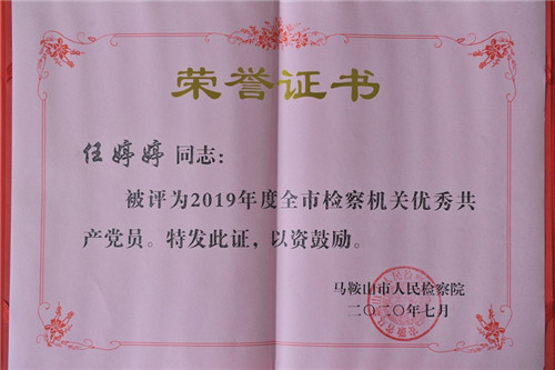 任婷婷获2019年度全市检察机关优秀共产党员称号