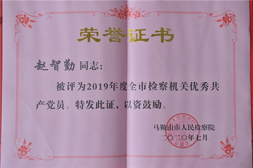 赵智勤获2019年度全市检察机关优秀共产党员称号