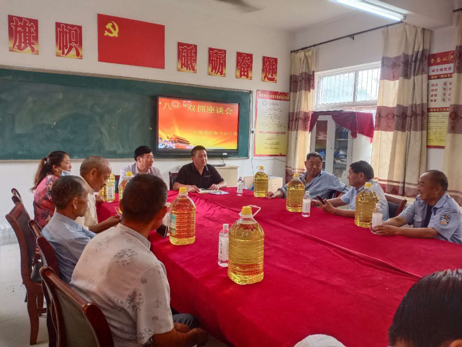为了扎实做好“八一’期间拥军优属、拥政爱民工作,推动军民融合深度发展,2020年8月1日,在“八一”建军节之际,固镇县何集小学领导班子成员组织开展了“八一”双拥座谈会,邀请部分现役军人家属和退役军人进行座谈,共同感受学校近年来在素质教育方面取得的成绩。并且走访、慰问了复员军人和现役军人家庭,给他们带去情感上的温暖,精神上的鼓励。