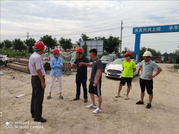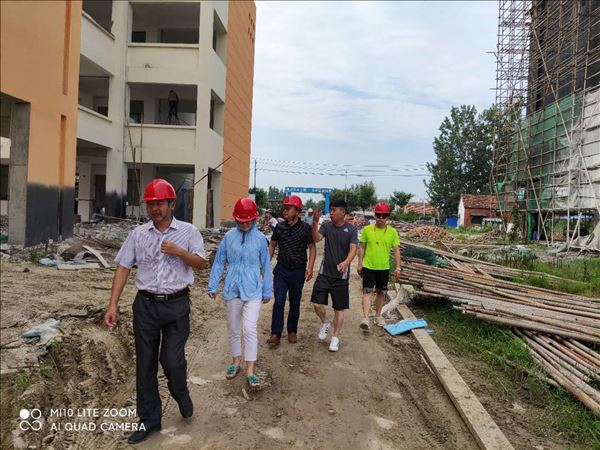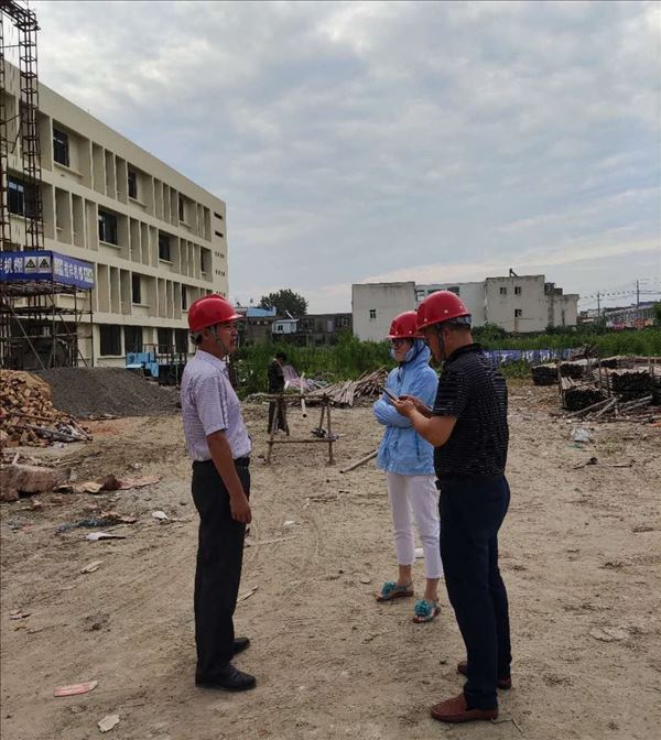 2020年8月4日上午,固镇县教体局副局长翁家欣、规划基建装备股郑雷在任桥中心校校长王兴亮的陪同下,冒着酷暑检查了任桥中心小学工地。