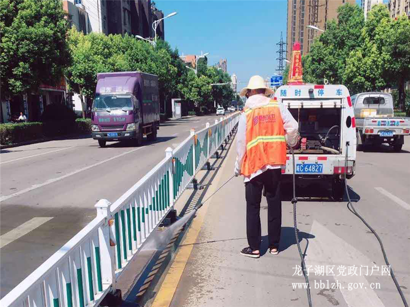 不畏高温,干劲十足,龙子湖环卫积极做好创卫迎查工作