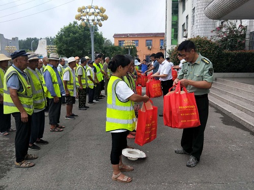8月5日,固镇新淮河村镇银行工作人员冒着高温酷暑来到连城镇,开展“ 夏日送清凉” 爱心捐赠活动,为那些坚守在高温一线的环卫工人捐赠了35份防暑降温礼包和矿泉水等,受到社会各界一致好评。