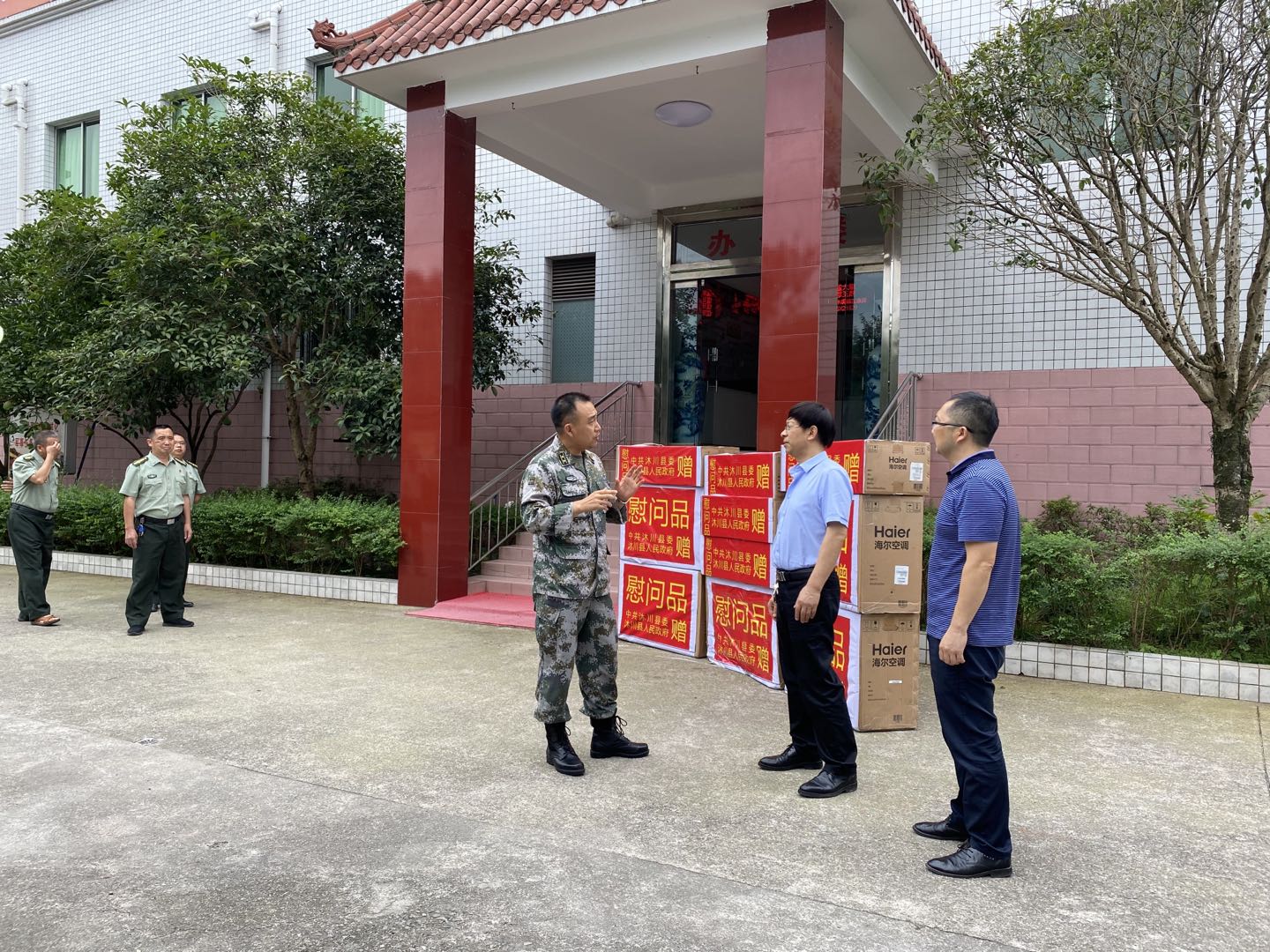 7月29日,县委常委、县政法委书记易少波带领慰问组先后到县人武部、县武警中队、县预备役营等单位开展走访慰问活动,代表县委、县政府,向关心支持沐川发展的部队和广大官兵致以诚挚的问候!对他们在维护驻地社会安定、支持地方经济建设等方面作出的努力表示感谢!同时,希望广大官兵继续发扬优良传统,强化使命担当,忠诚履职尽责,维护社会和谐稳定,为沐川各项事业发展作出新的更大贡献。