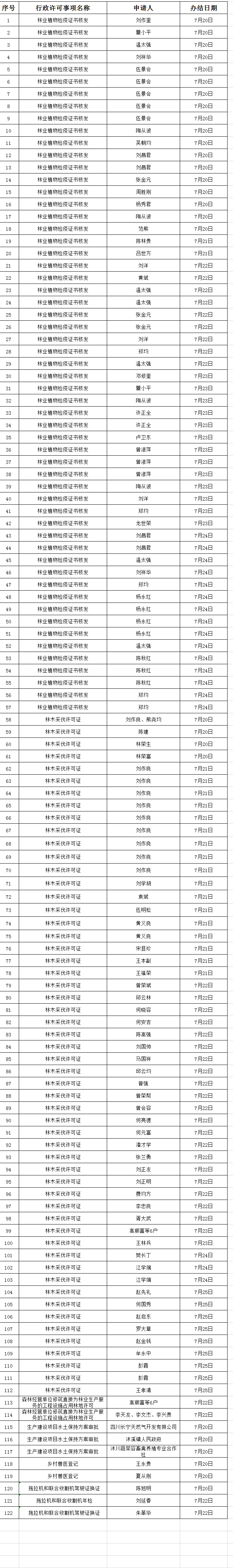 沐川县行政审批局7月20日-7月24日审批结果公示(二)