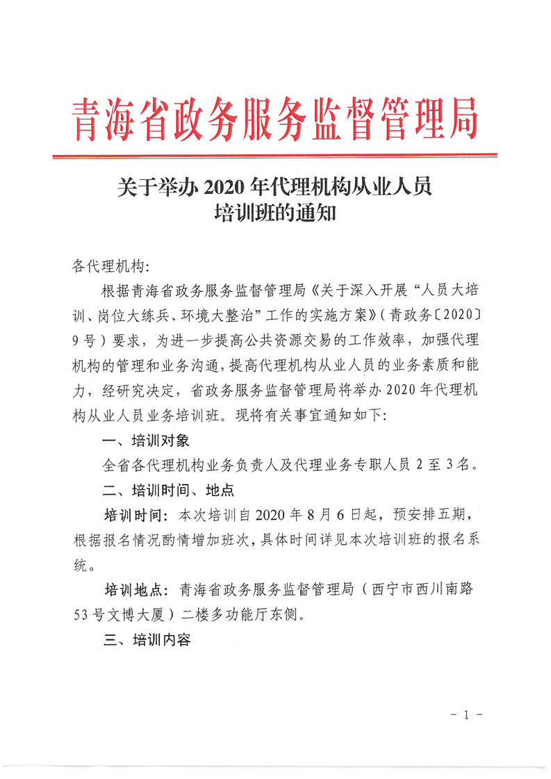 关于举办2020年代理机构从业人员培训班的通知