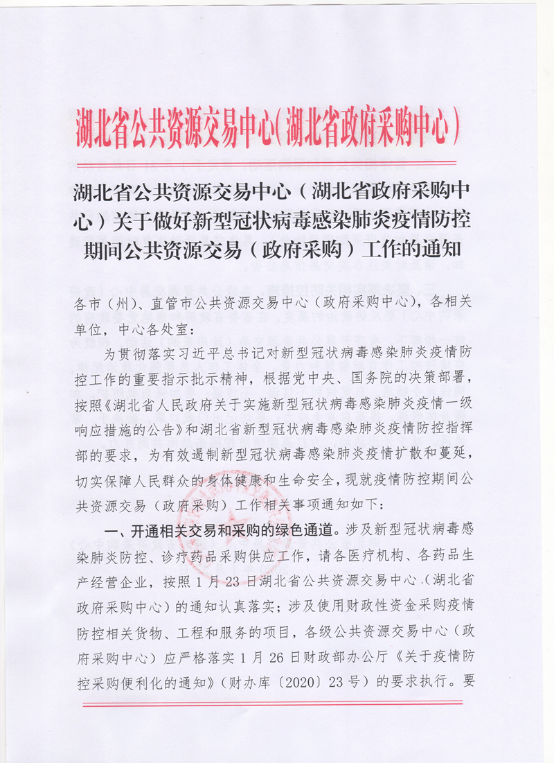 关于做好新型冠状病毒感染肺炎疫情防控期间公共资源交易(政府采购)工作的通知