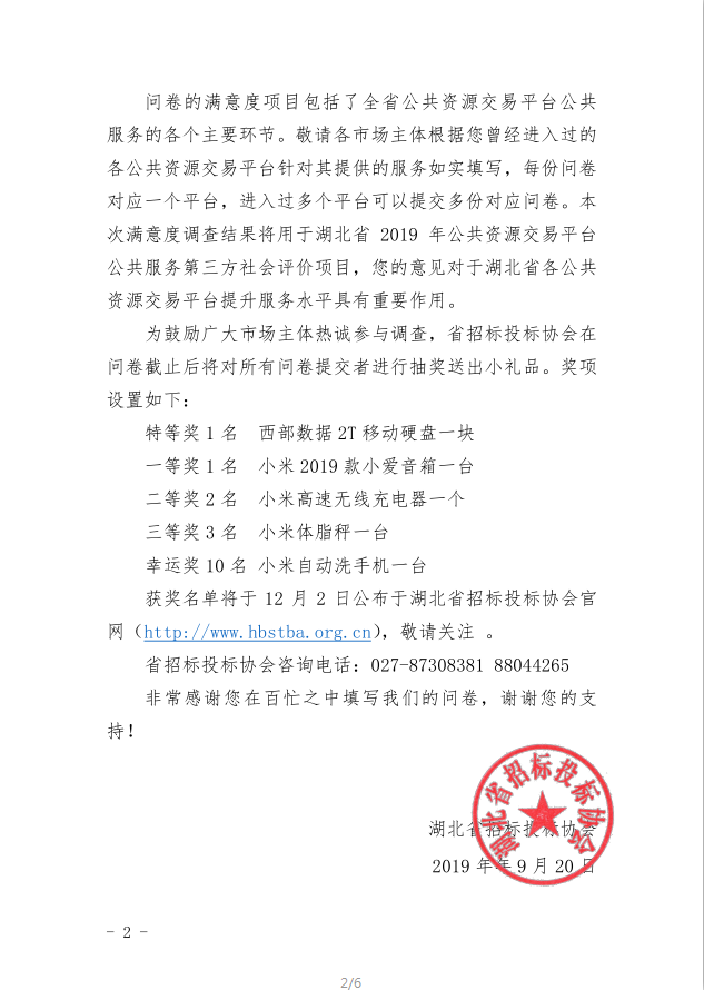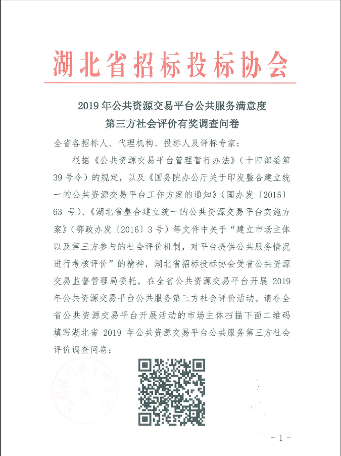 2019年公共资源交易平台公共服务满意度第三方社会评价有奖调查问卷