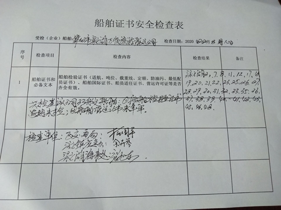 查实该公司33艘船舶检验证书逾期未检,船舶营运证书未年审,检查组当场下达安全隐患整改通知书要求立即整改。