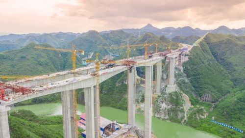 清水江大桥最大墩高125米,最大跨度150米,是凯里环高项目关键控制性工程和重难点工程。大桥两侧地势陡峭、高山深谷“狭管效应”显著致使风力较大,施工安全风险系数大,同时,大桥下穿铁路、航道,附近电网密集,需要大量迁改。在建设过程中,担负项目施工总承包任务的中国水电十四局一方面通过落实责任,强化执行力,打造务实高效的管理团队,另一方面因地制宜,以形推质,注重细节、务实笃行,以首件引领,严控质量通病,全力推行工艺、工序标准化及施工过程标准化,探索出了一条技术先行,安全、质量、进度等同步推进的路子。截至目前,清水江大桥已经开展《150米大跨度连续刚构施工技术研究》、《125m高双肢薄壁空心墩施工技术研究》等6项科研课题攻关,取得了2项工法。