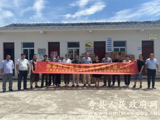 8月14日,寿县团县委、蜀山团区委联合顺丰快递公司到三觉镇庙桥村开展灾后慰问活动,捐赠大米200袋、食用油100桶、面包100箱等生活必需品。