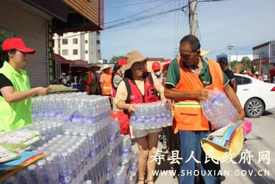 8月13-14日,寿县“小红帽”爱心志愿者服务队携手江淮义警堰口工作站和堰口邮政分局,先后到堰口、十字路、江黄三个片区,为环卫工人送上毛巾、矿泉水、西瓜、遮阳帽等慰问品,感谢他们为镇村文明创建、卫生保洁而付出的辛勤劳动。