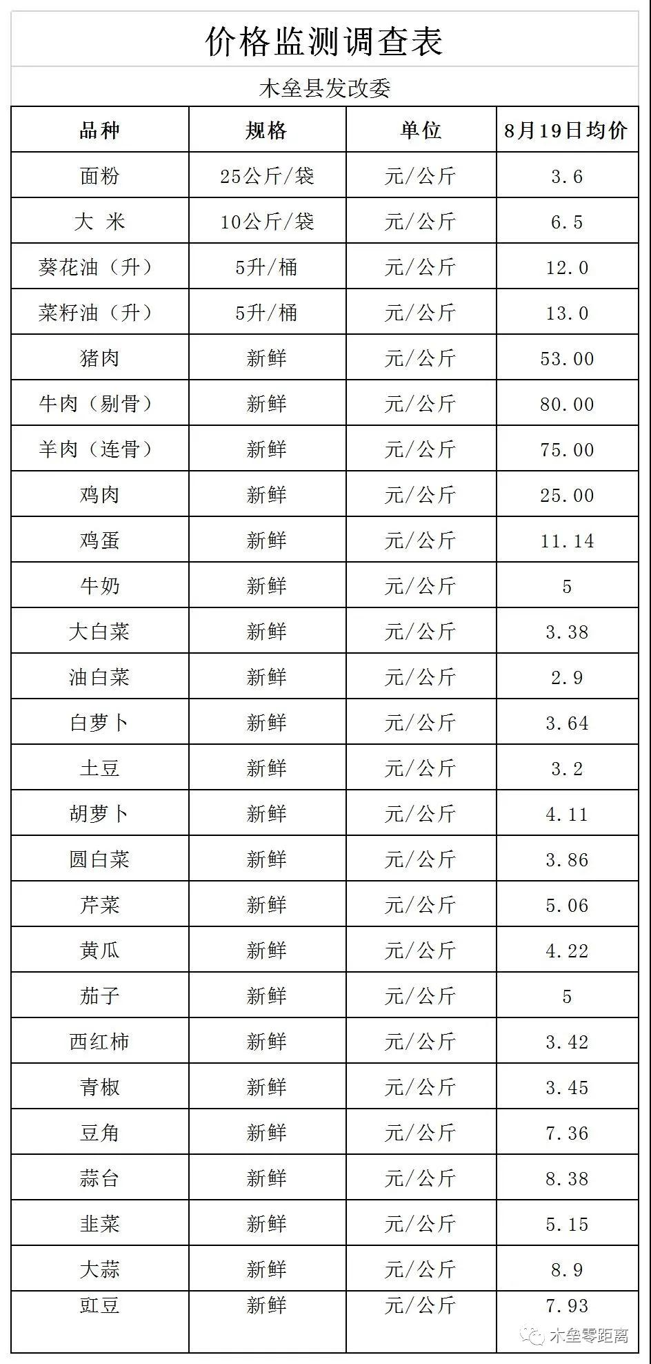 【统筹疫情防控和经济社会发展】8月19日木垒县主要农副产品市场均价公示