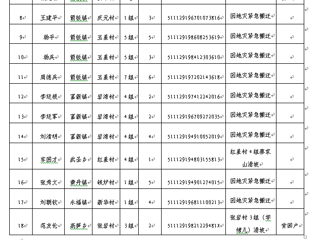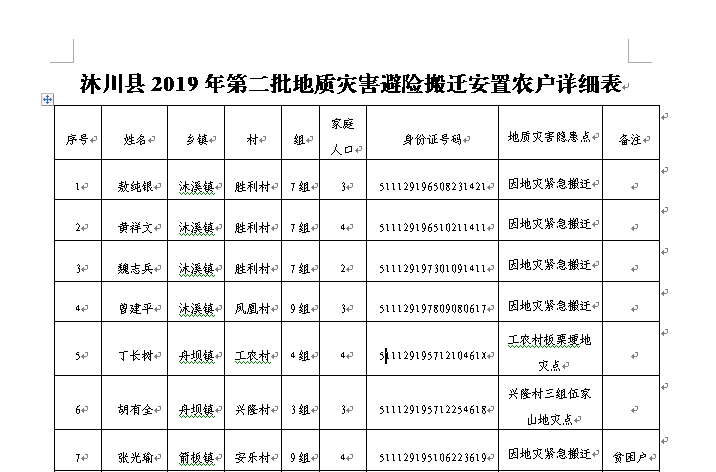 沐川县2019年第二批地质灾害避险搬迁安置农户详细表