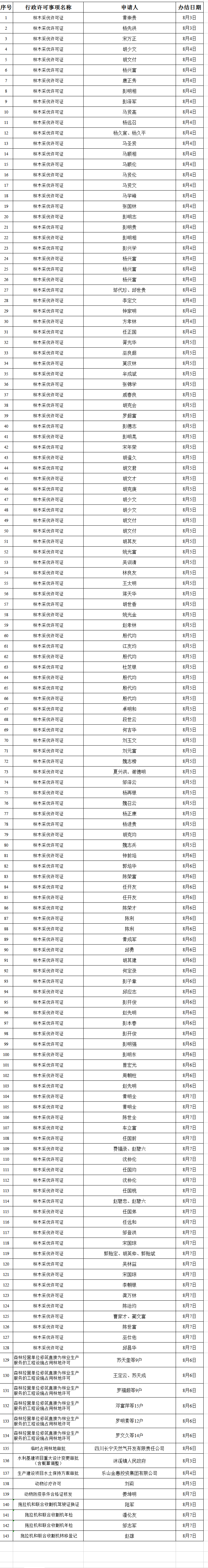 2020年8月3日—8月7日已办结行政许可事项公示(二)
