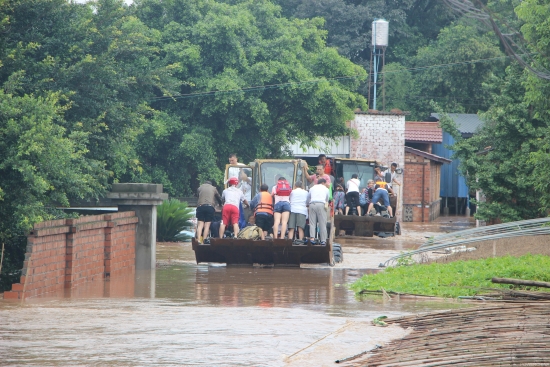 18日上午5时,地处岷江和马边河山谷地带的电建建筑公司第四项目部,在得知项目附近的犍为村仍有500多名村民被困时,全体人员紧急组成抢险突击队,拿出项目早已备好的救援物资、生活补给发放给百姓 ,出动项目装载机、挖机等机械设备协助部队官兵转移受困百姓。最终,在洪峰来临前20分钟,将所有村民安全转移到目的地。