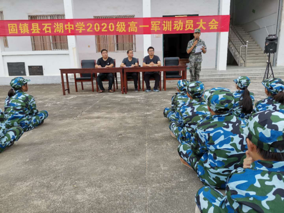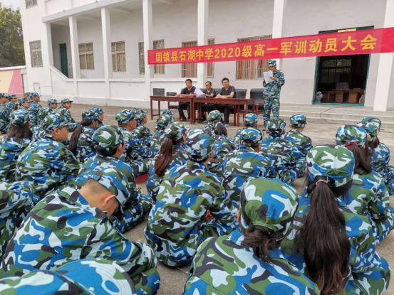 2020年8月26日,石湖中学2020级全体初一、高一新生奔赴军训训练场,开始了为期7天的军训生活。上午8点30分,庄严雄壮的《中华人民共和国国歌》响彻整个会场,军训动员大会在此隆重举行。初一、高一新生身着崭新迷彩服齐聚训练场,学校领导、初一、高一新生年级班主任出席本次动员会。