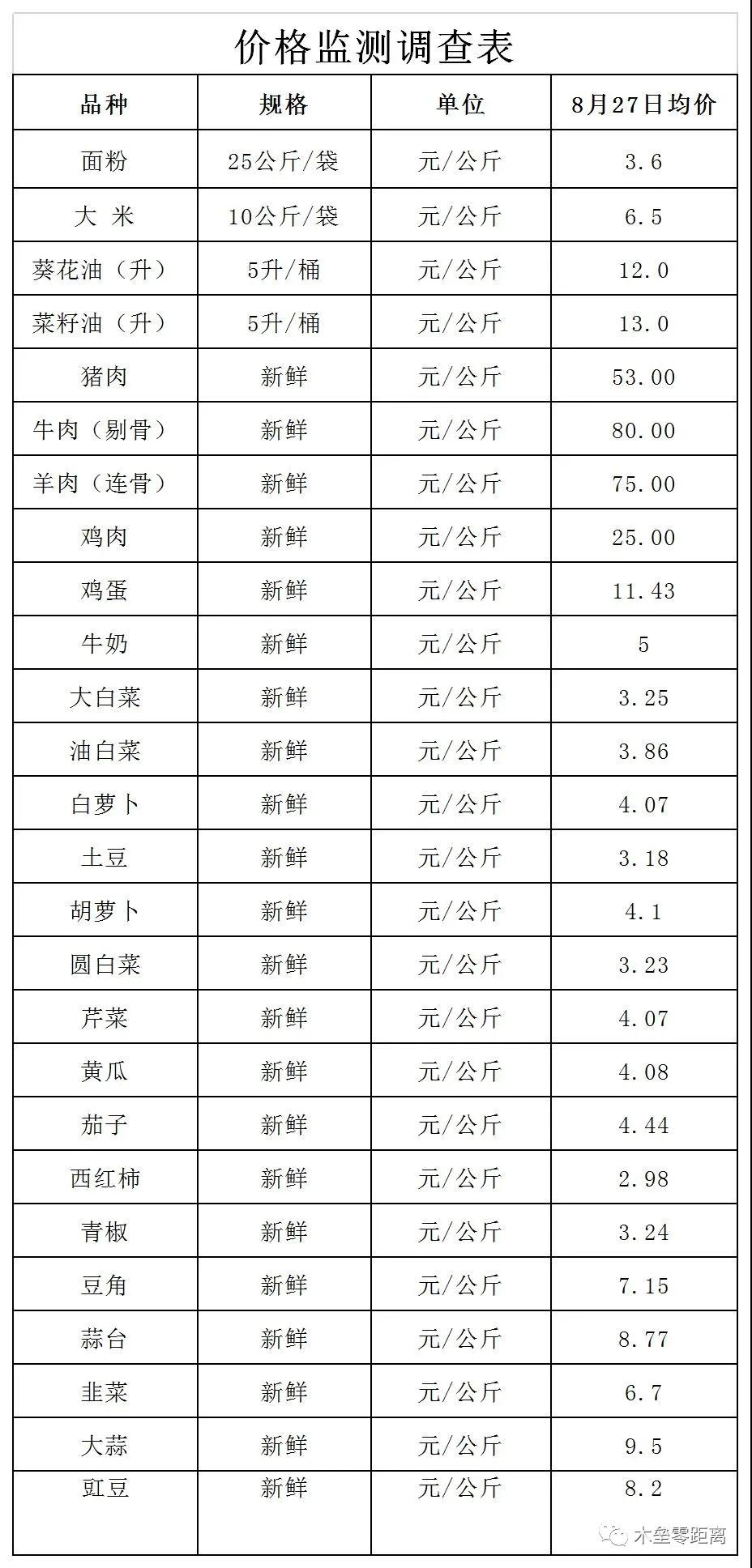 8月27日木垒县主要农副产品市场均价公示