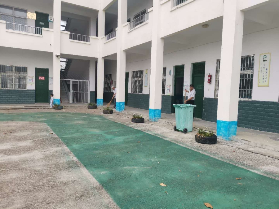 在校长许伟的带领下,全校教师对校园环境进行了大扫除,以清新整洁的校容校貌迎接开学。经过两个多小时的紧张劳动,校园环境焕然一新,给孩子们创造了一个卫生、干净、温馨的学习环境,为新学期开学创造了良好的学习环境。