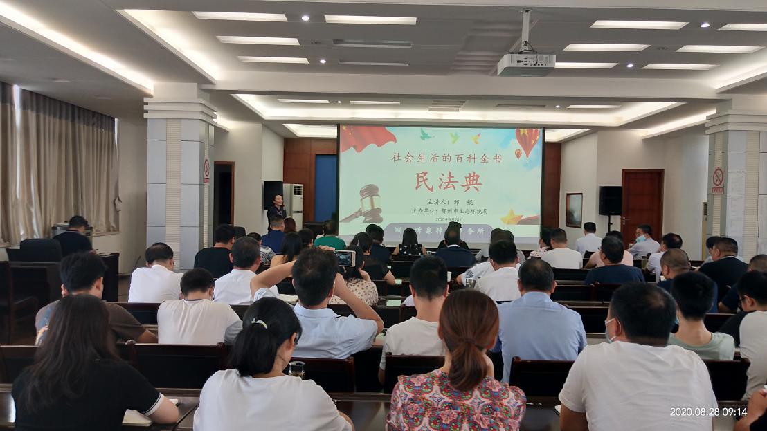 2020年8月28日上午,市生态环境局邀请湖北听泉律师事务所主任邹鲲律师为全局干部职工讲解《民法典》,并邀请了东升社区居民旁听,市生态环境局主要负责人及局党组成员参加了学习。