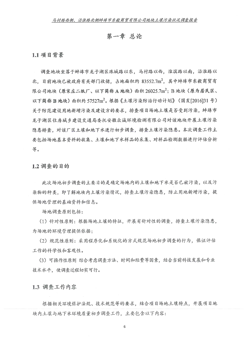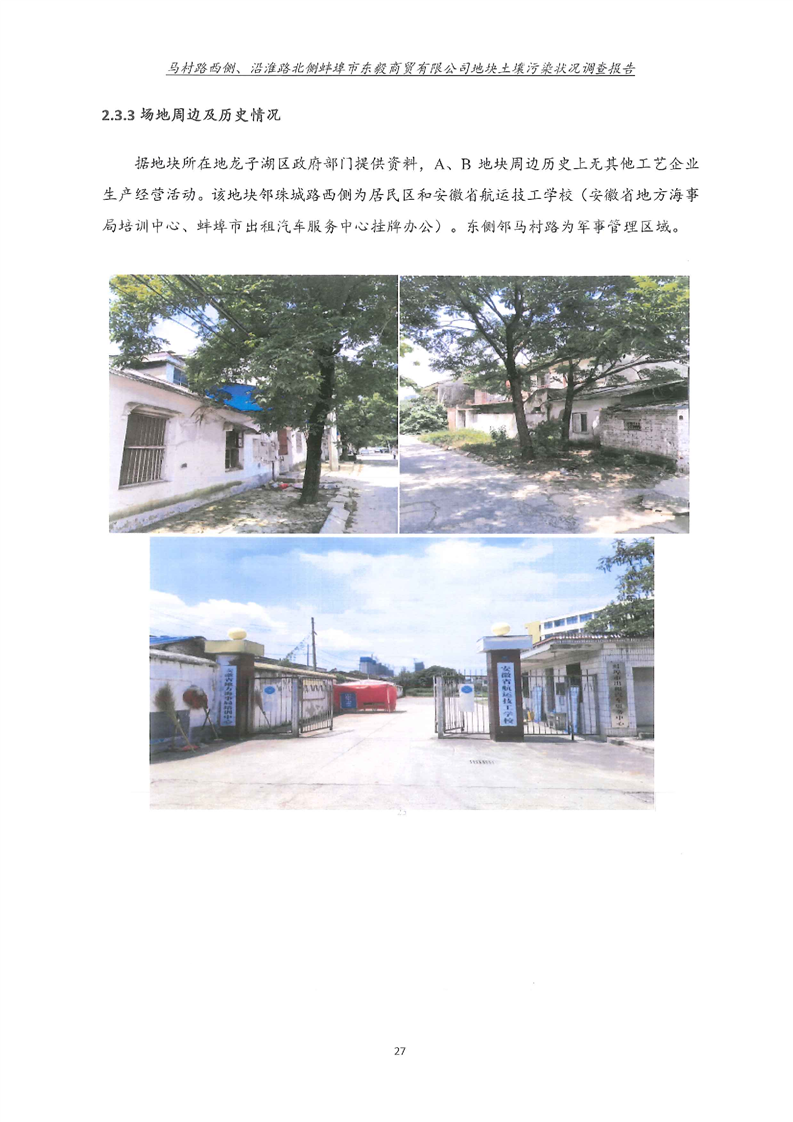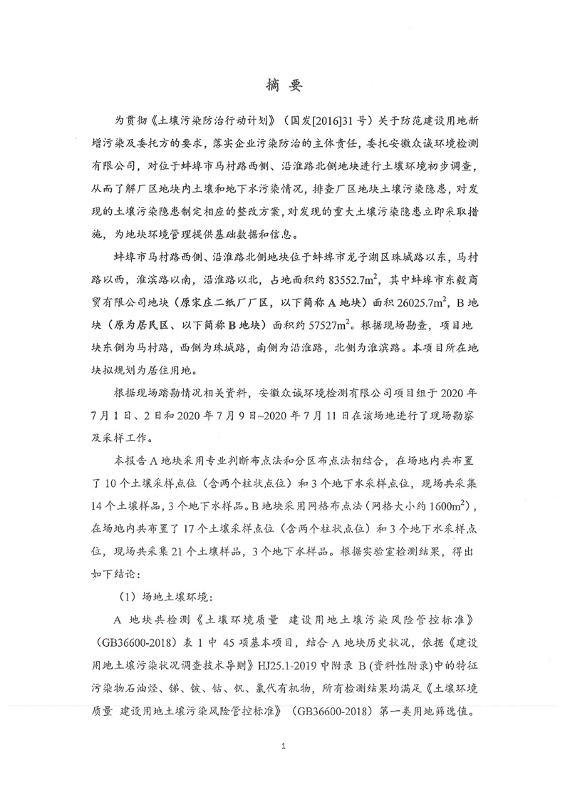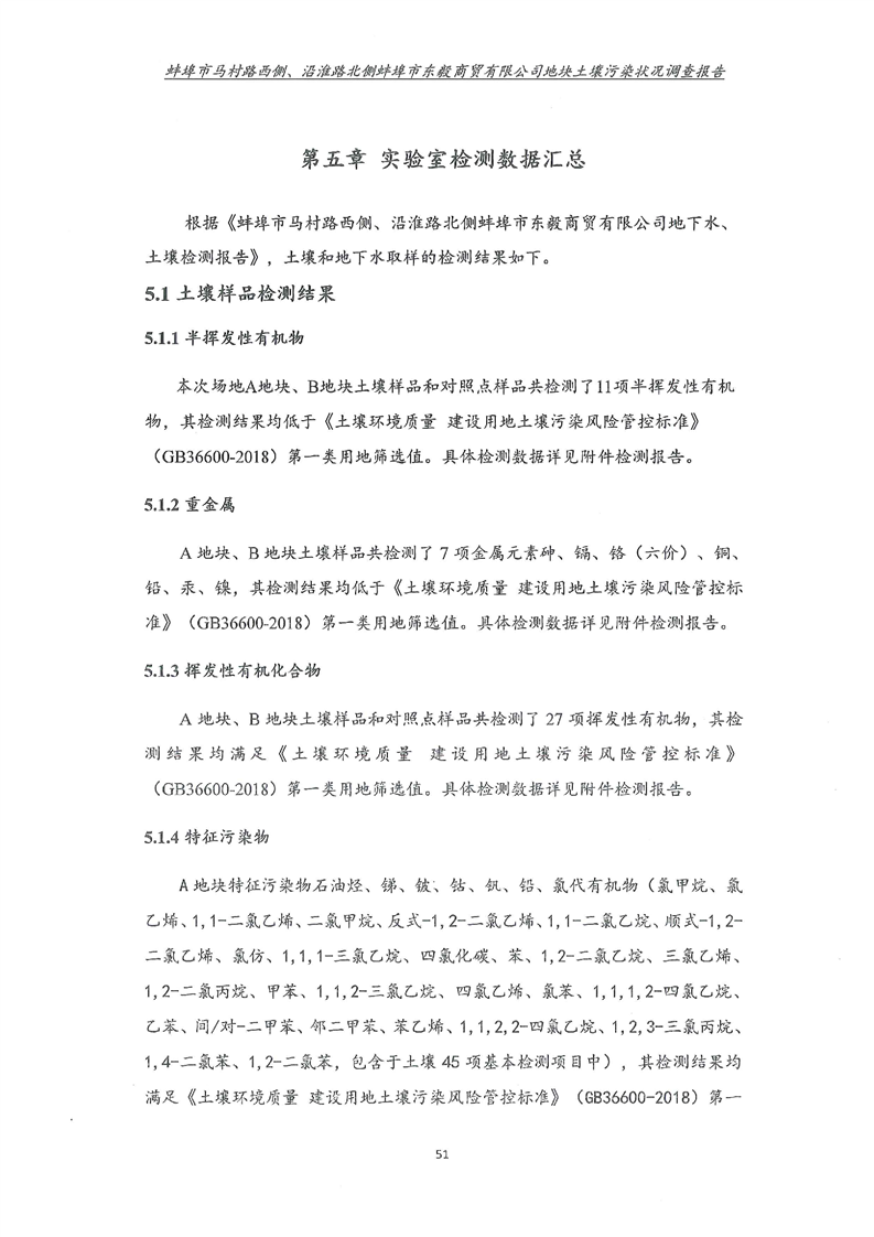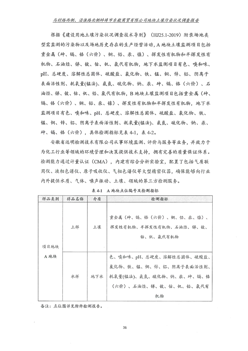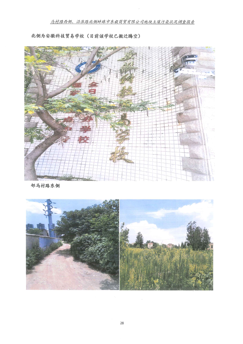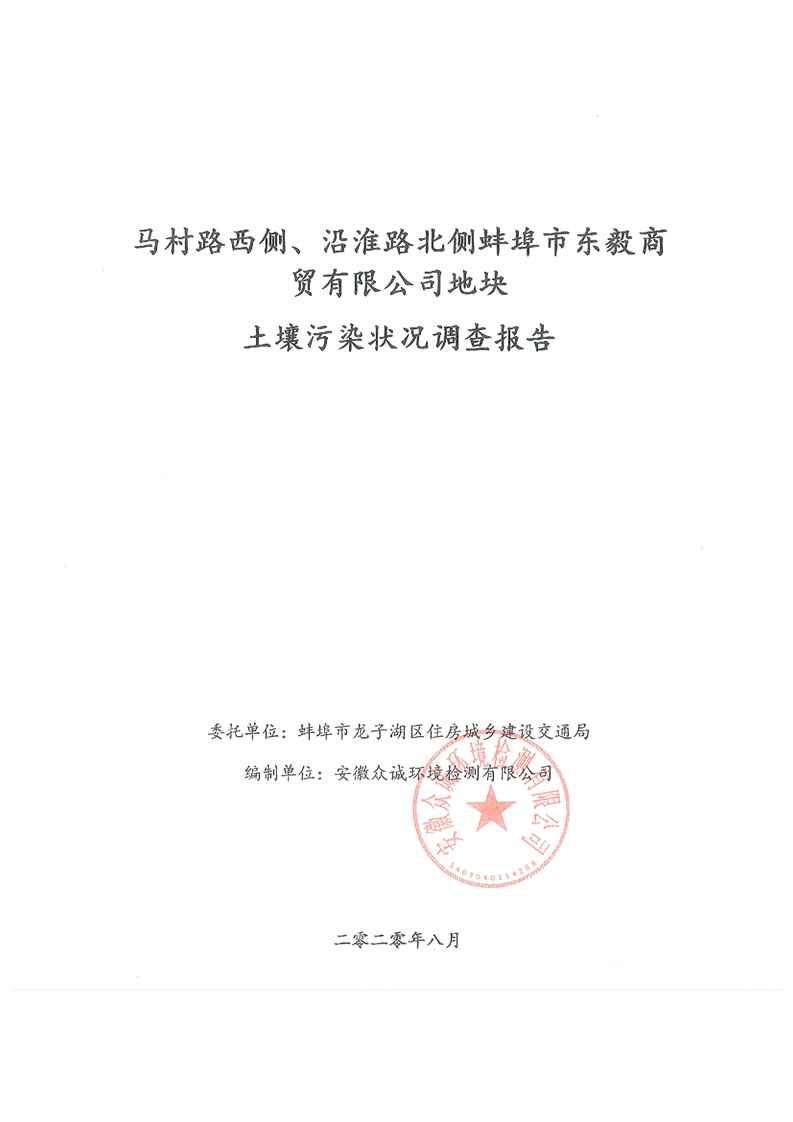 马村路西侧、沿淮路北侧蚌埠市东毅商贸有限公司地块土壤污染状况调查报告