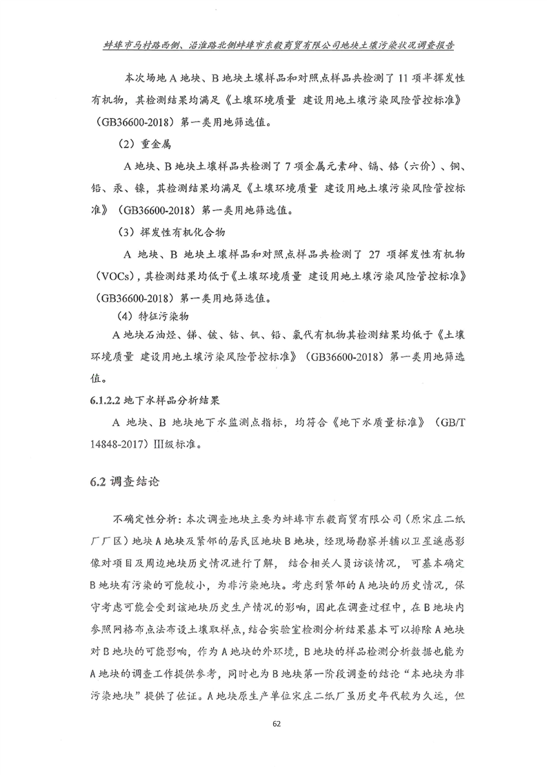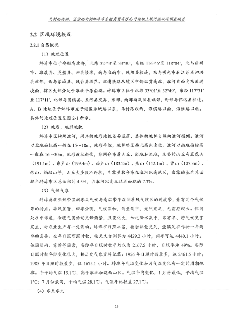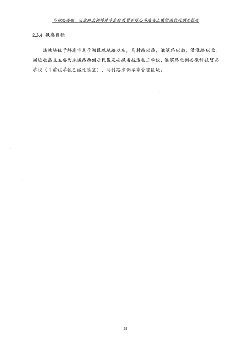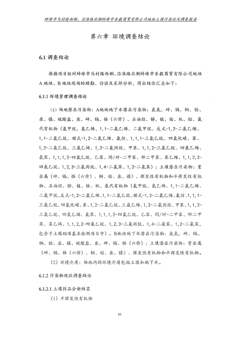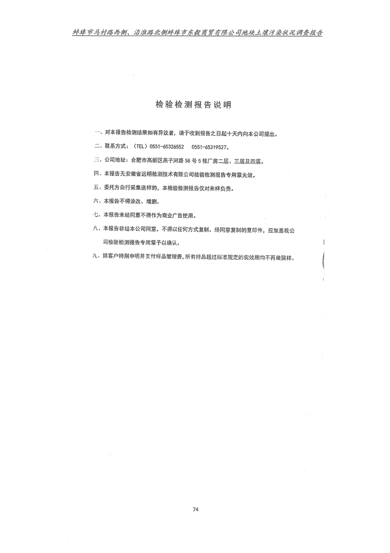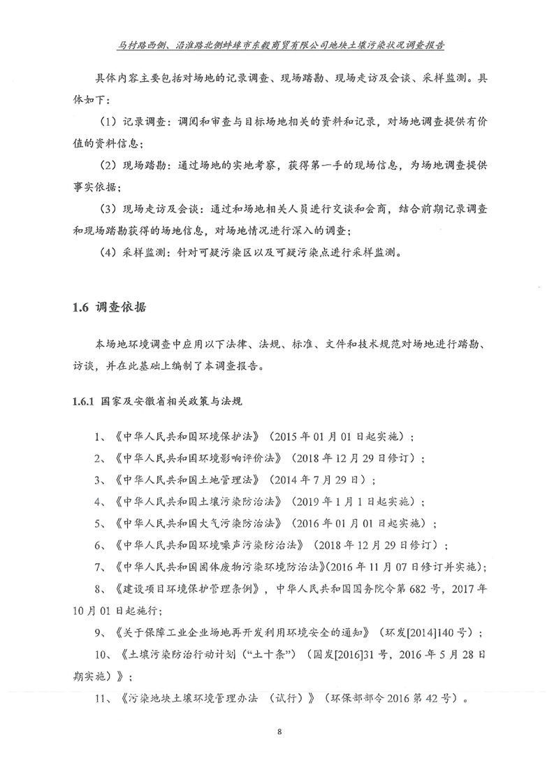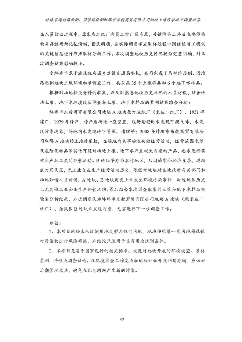 马村路西侧、沿淮路北侧蚌埠市东毅商贸有限公司地块土壤污染状况调查报告