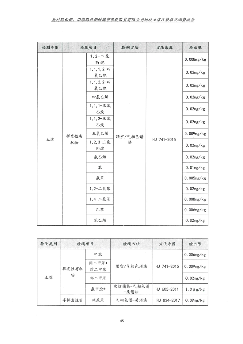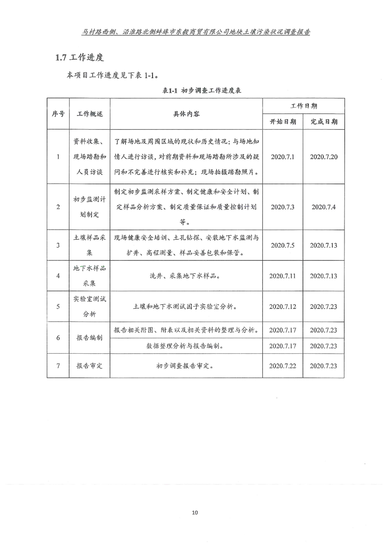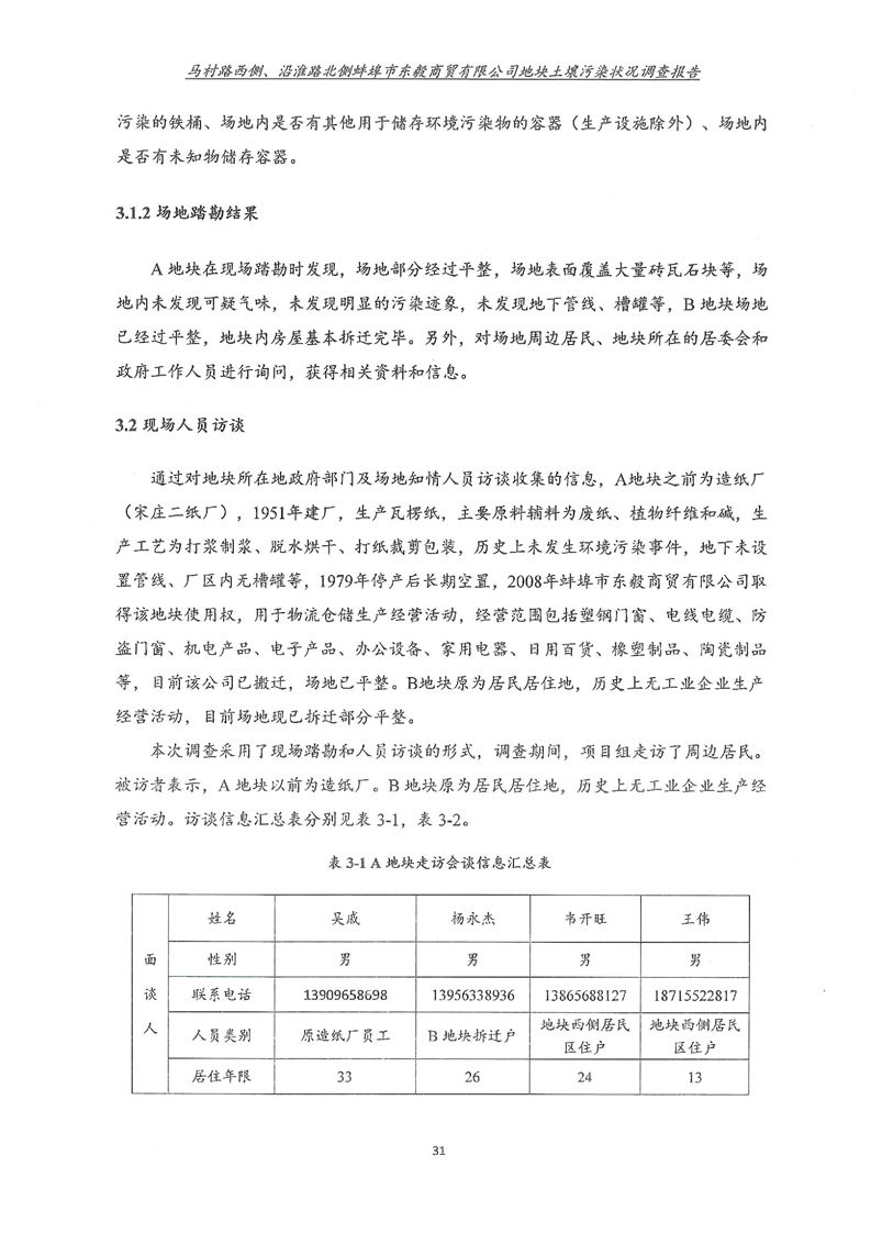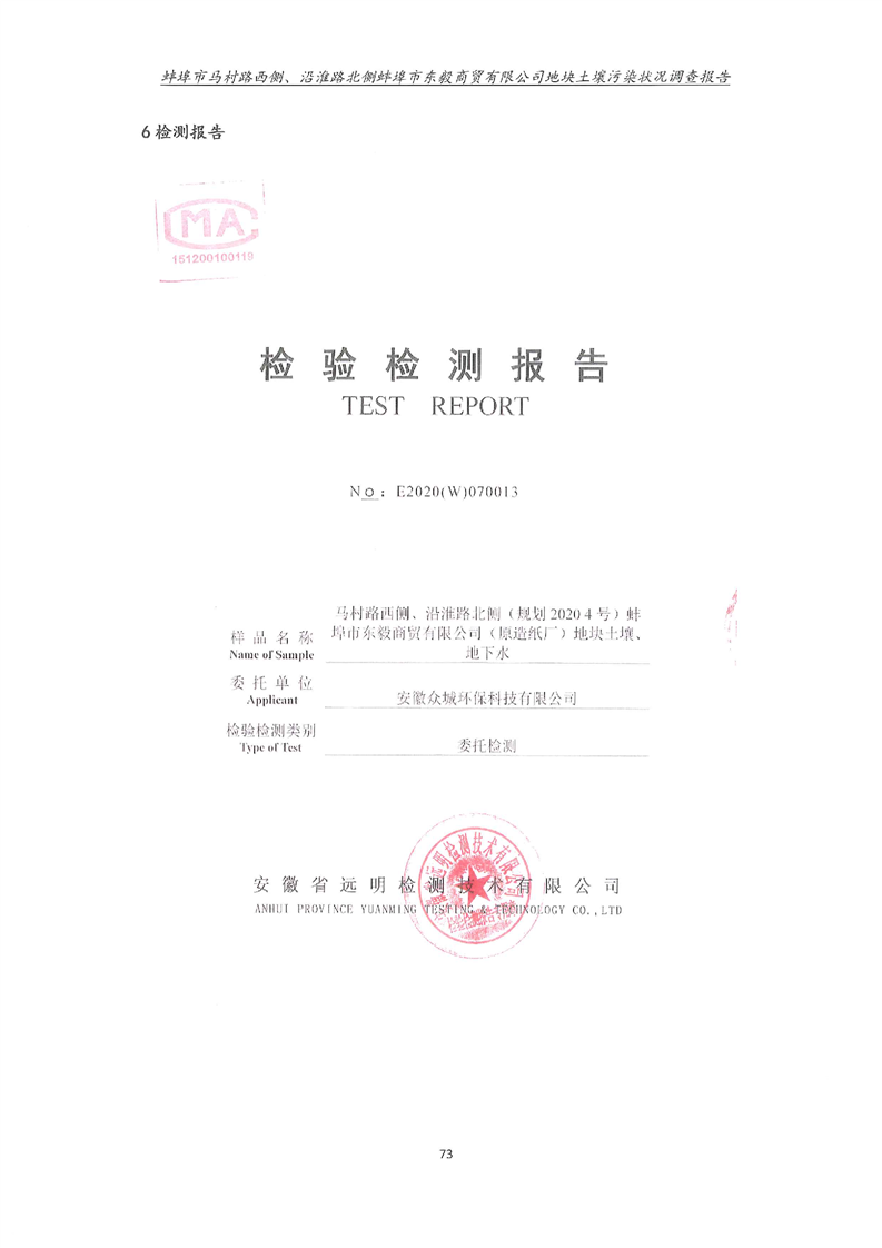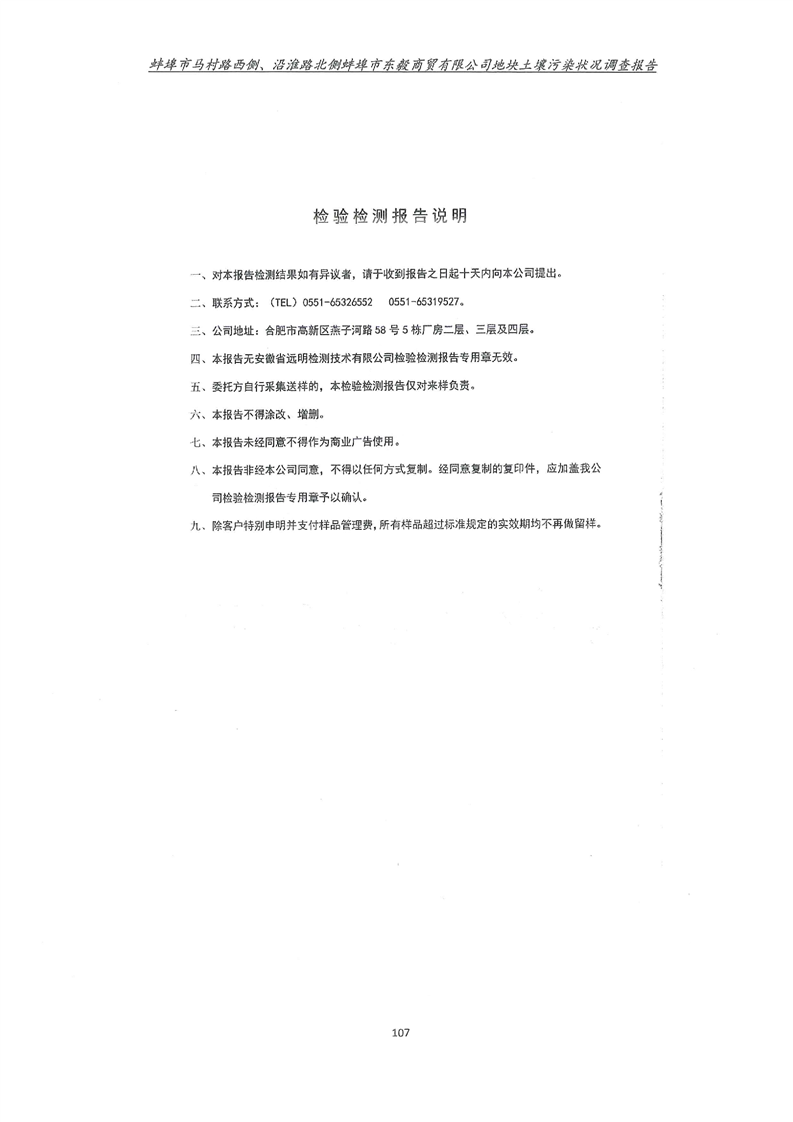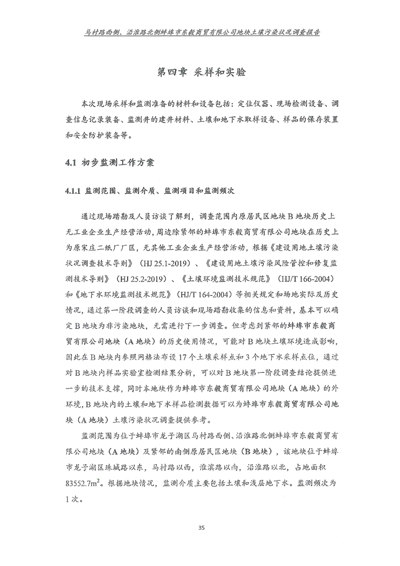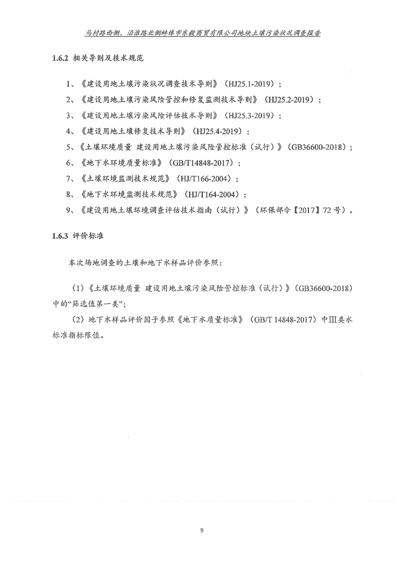 马村路西侧、沿淮路北侧蚌埠市东毅商贸有限公司地块土壤污染状况调查报告