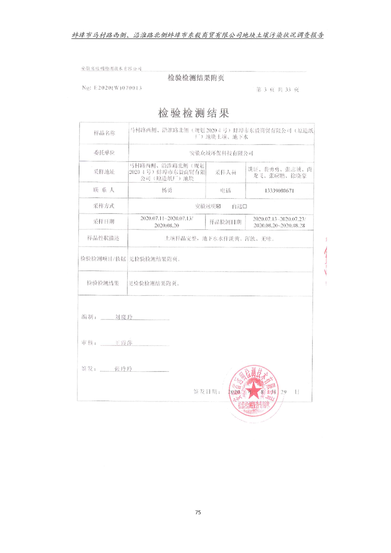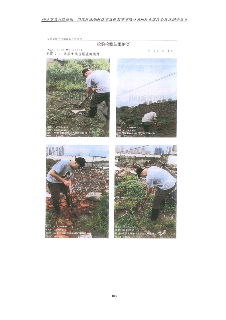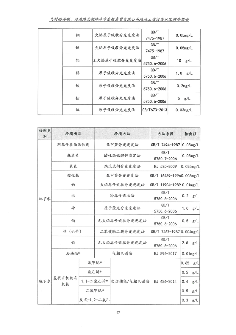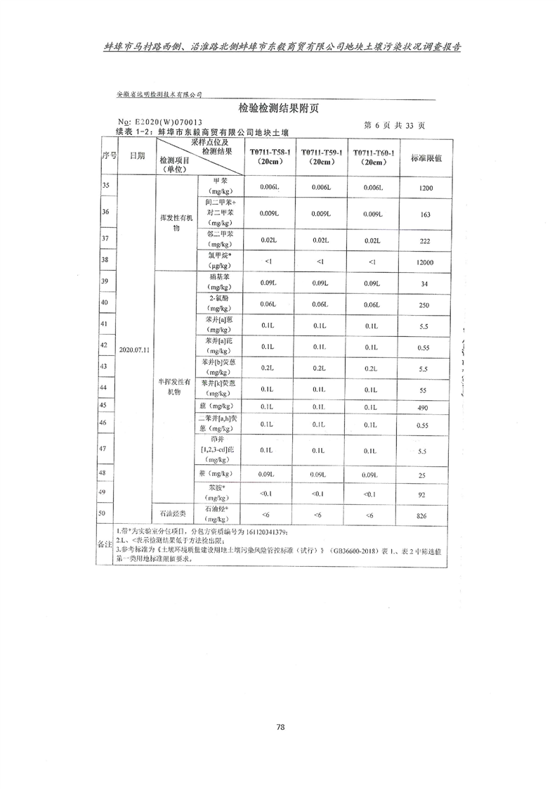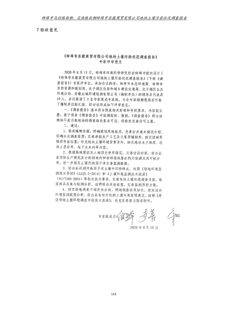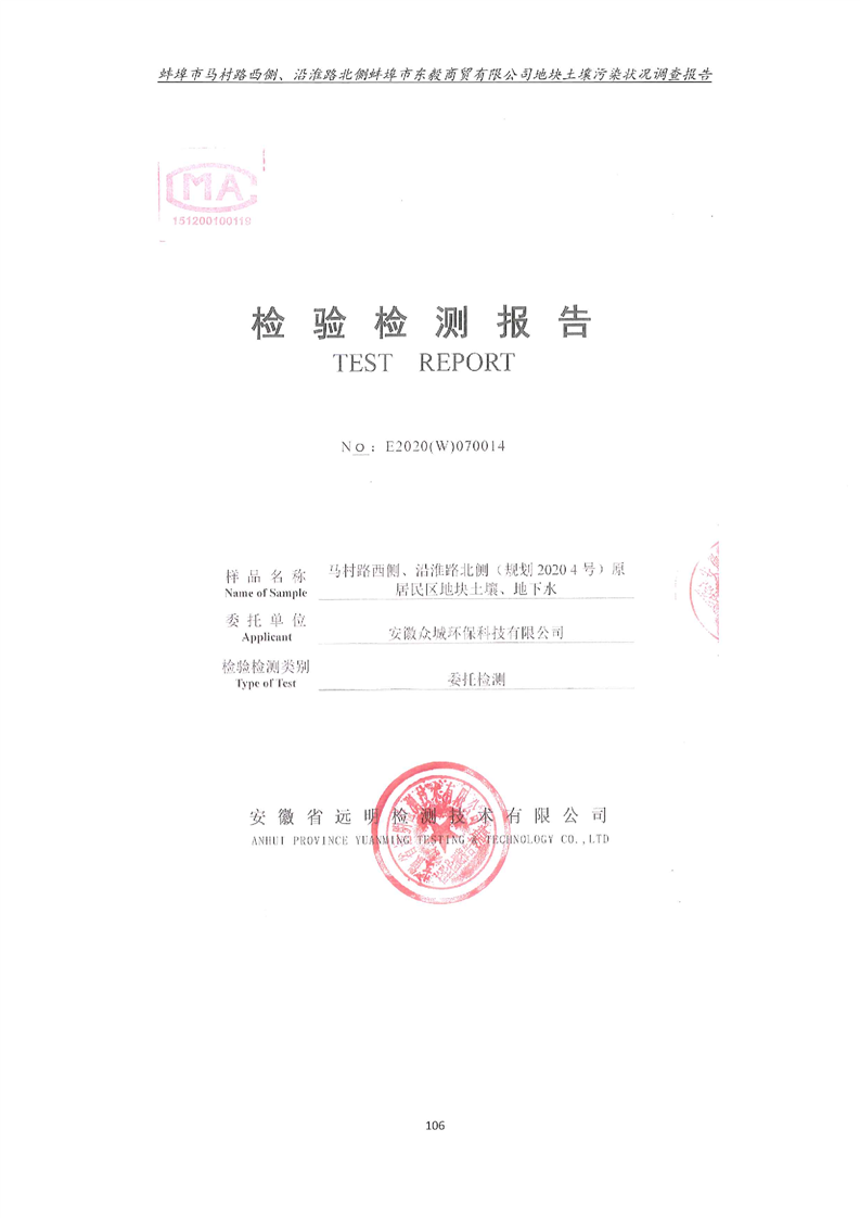 马村路西侧、沿淮路北侧蚌埠市东毅商贸有限公司地块土壤污染状况调查报告