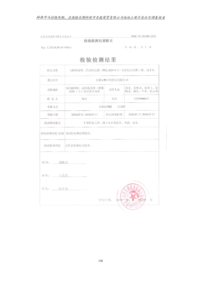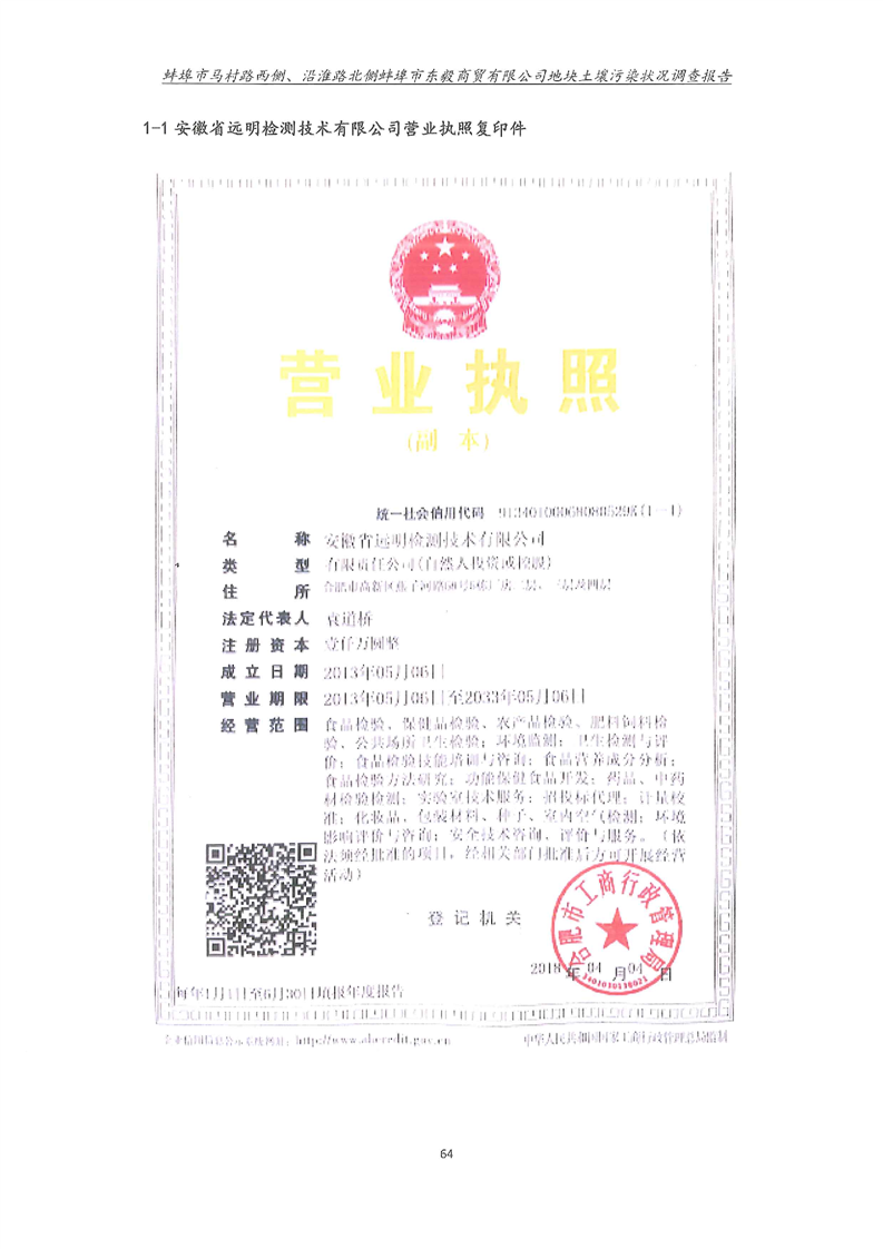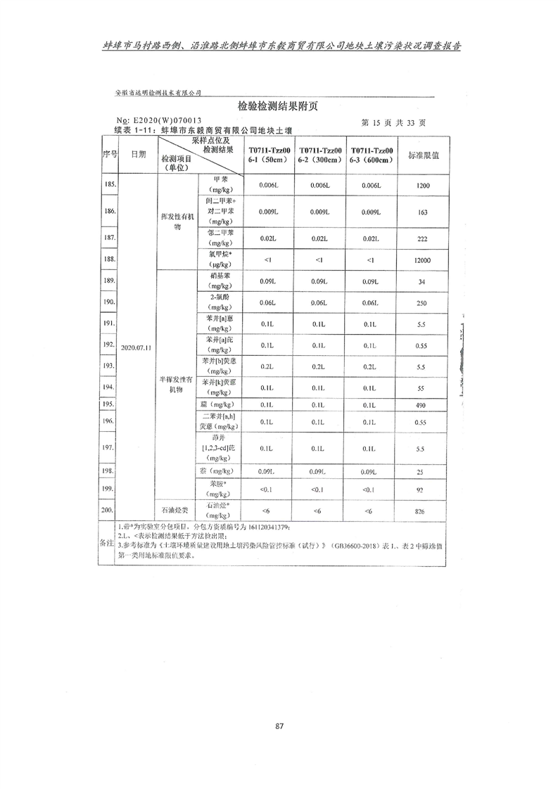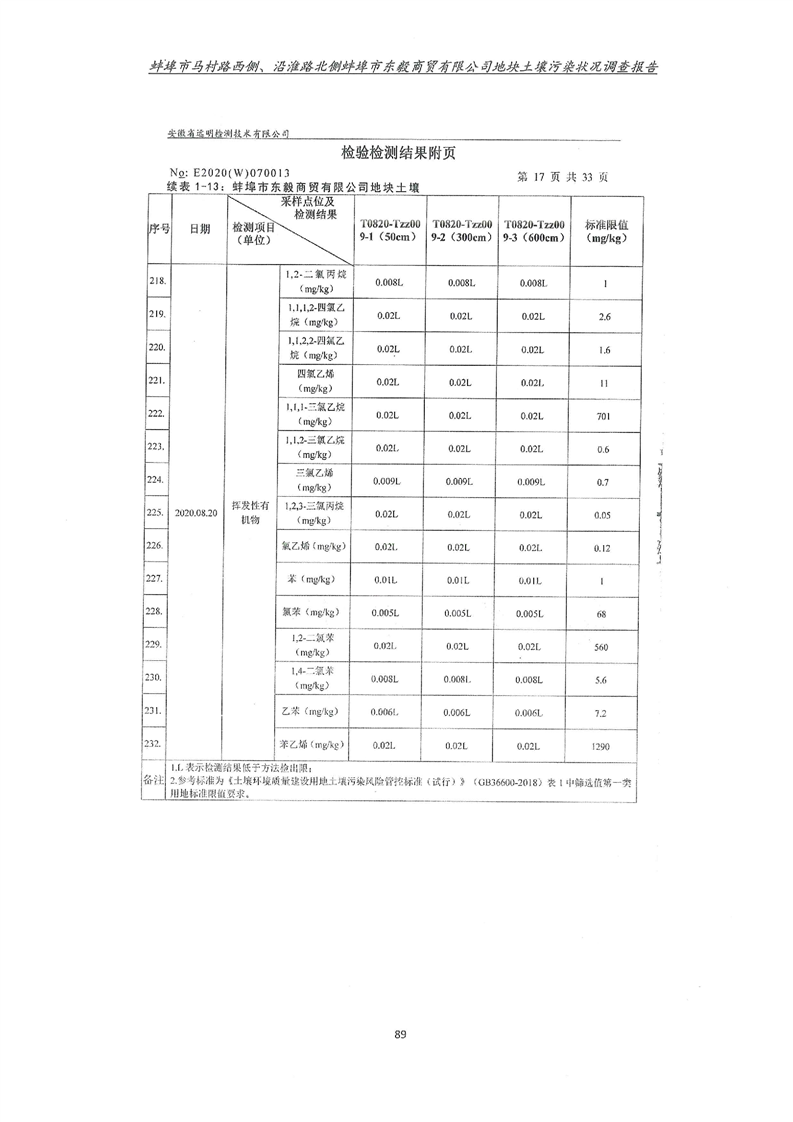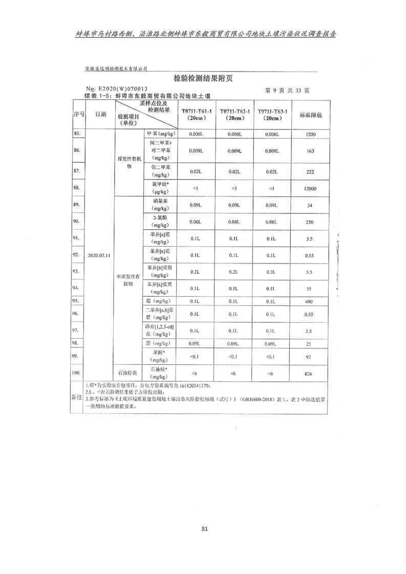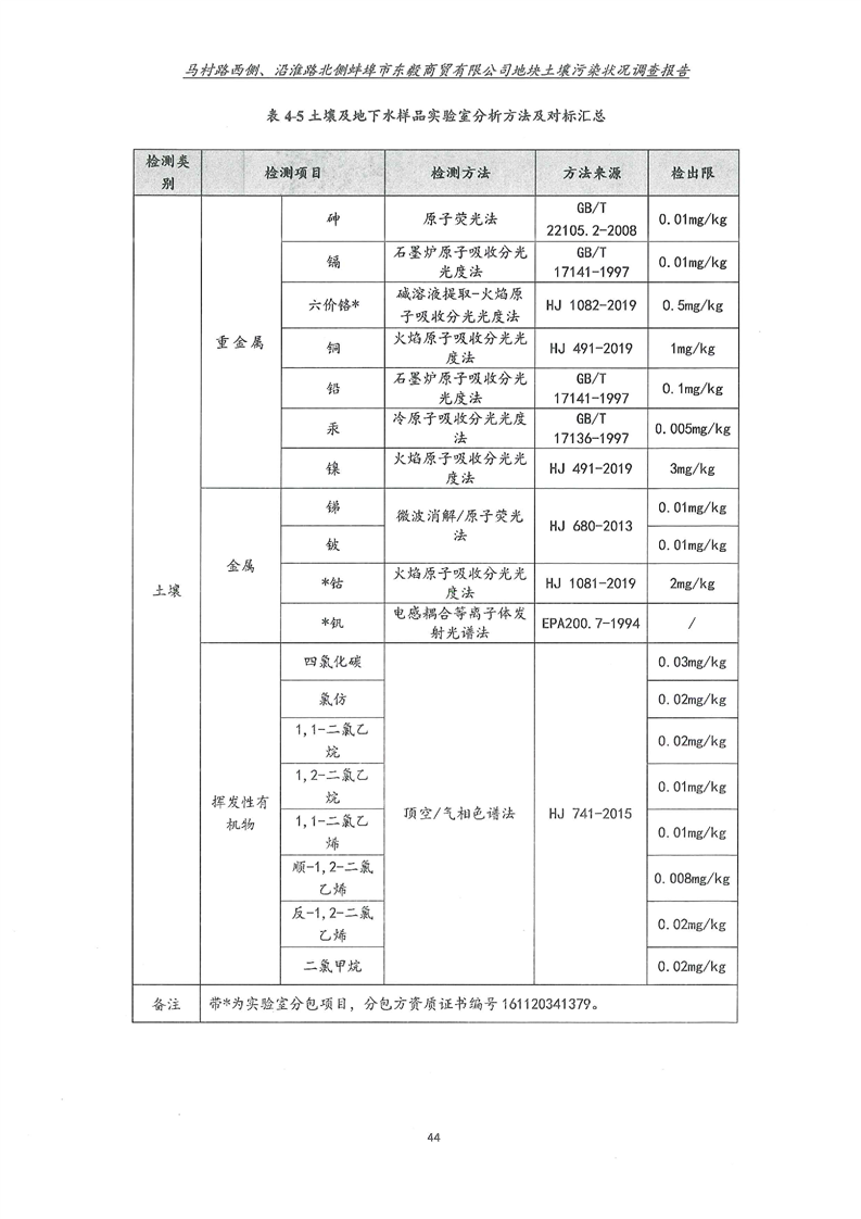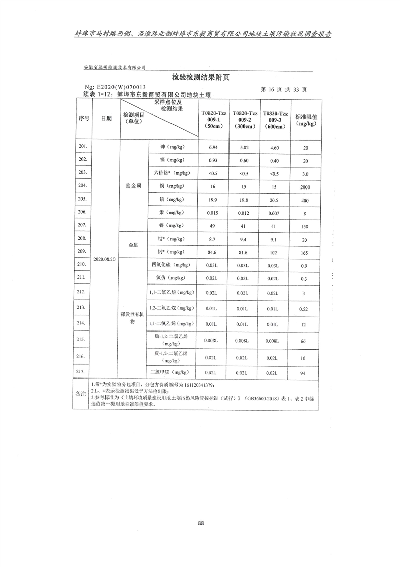 马村路西侧、沿淮路北侧蚌埠市东毅商贸有限公司地块土壤污染状况调查报告