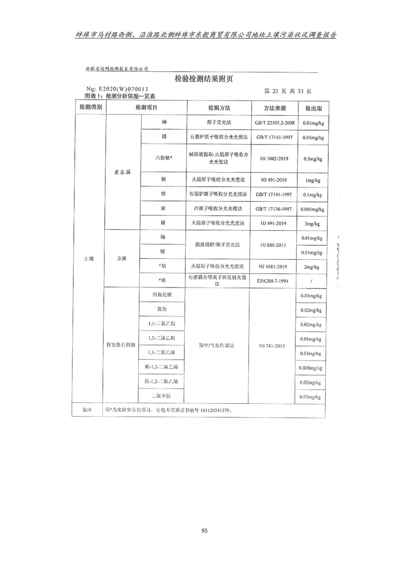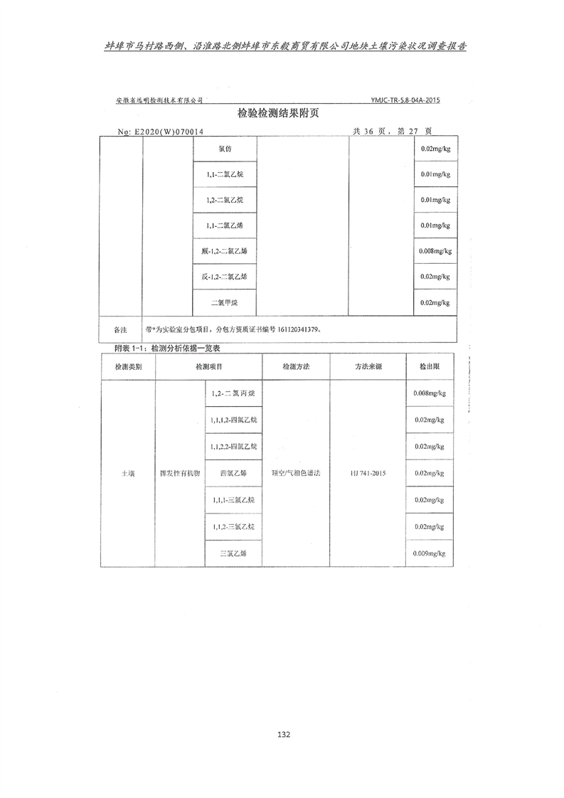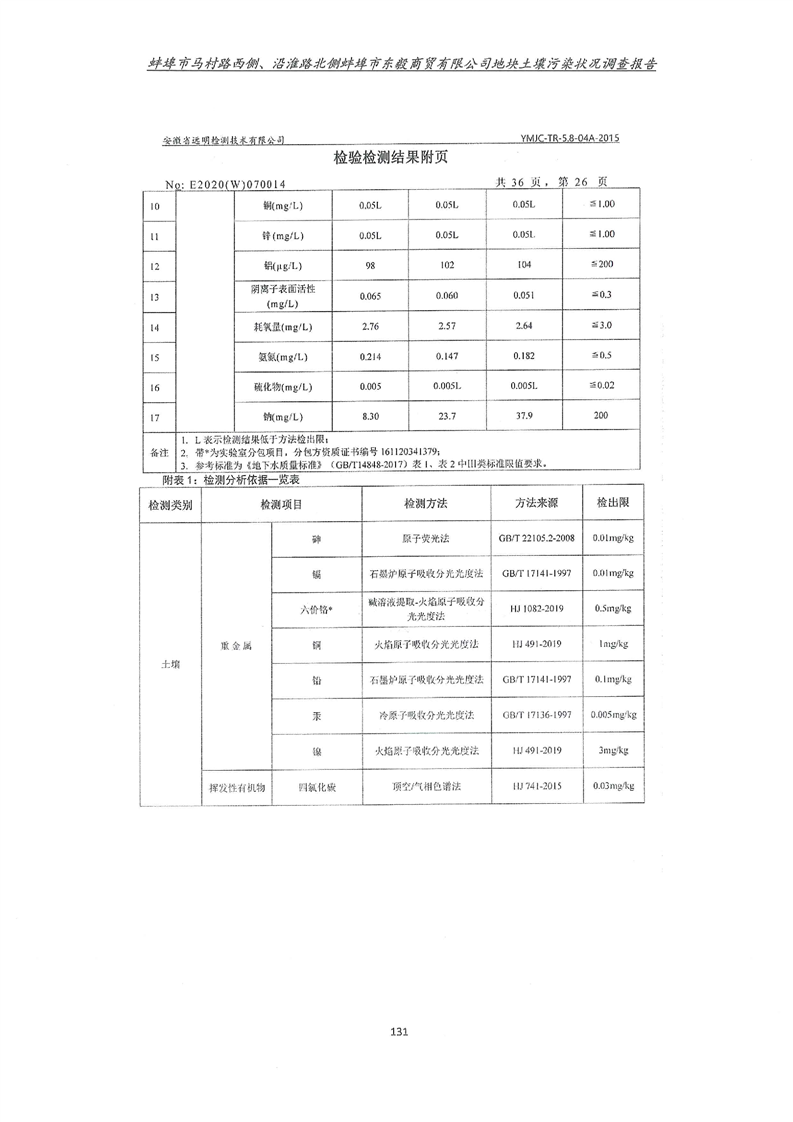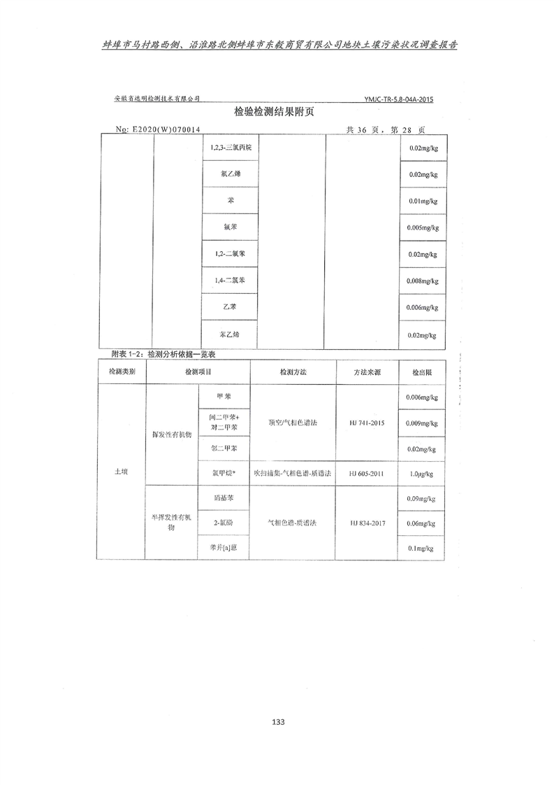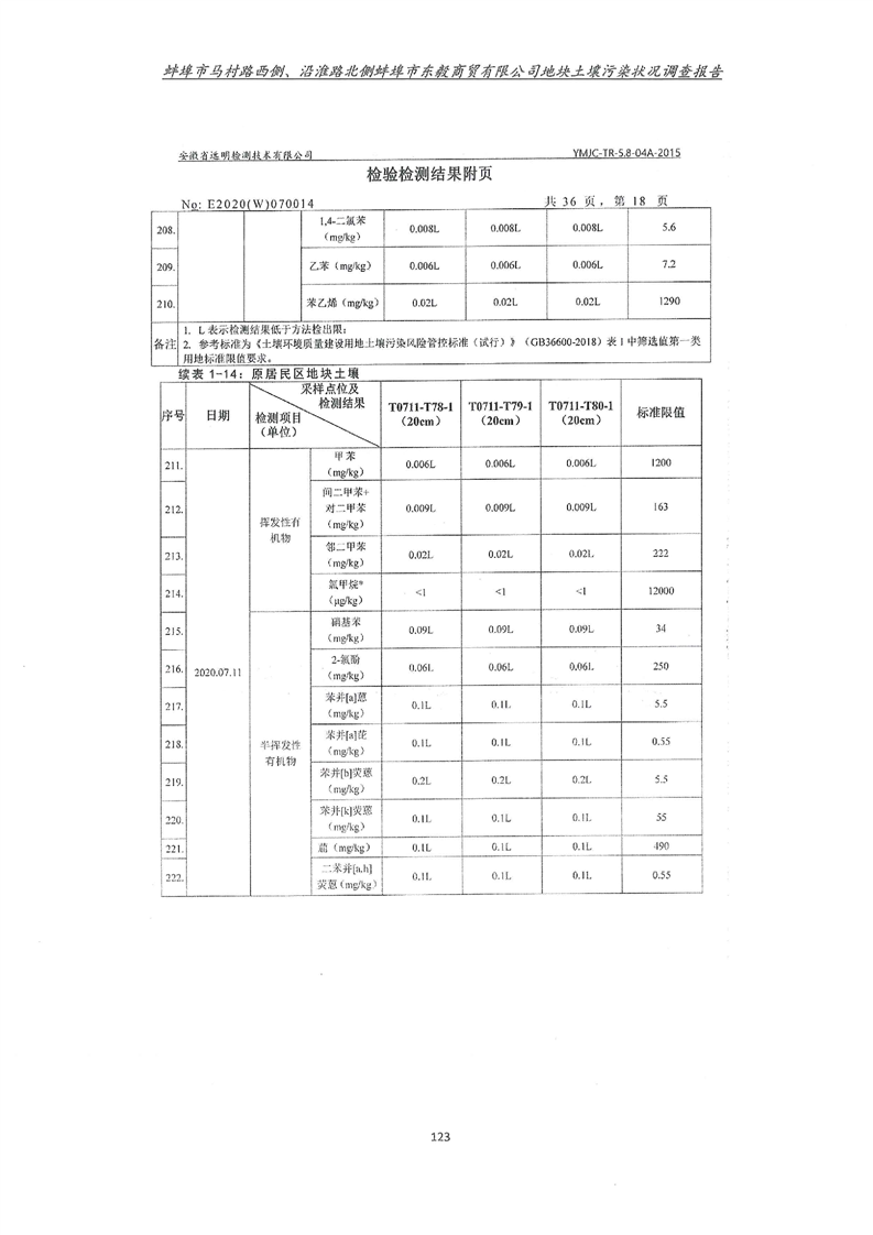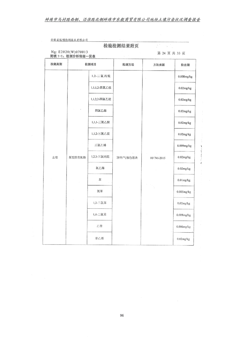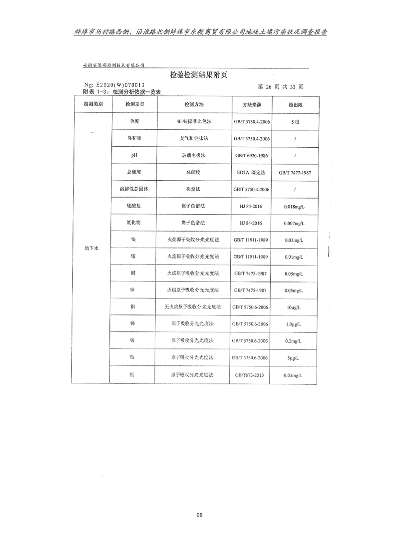 马村路西侧、沿淮路北侧蚌埠市东毅商贸有限公司地块土壤污染状况调查报告