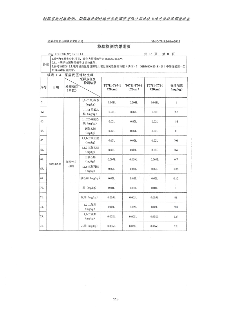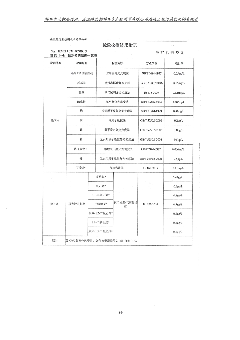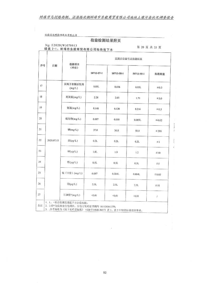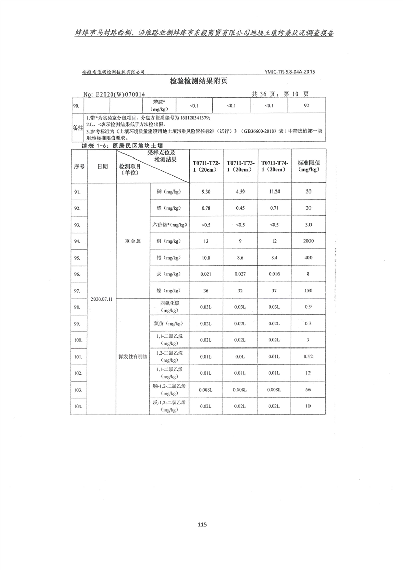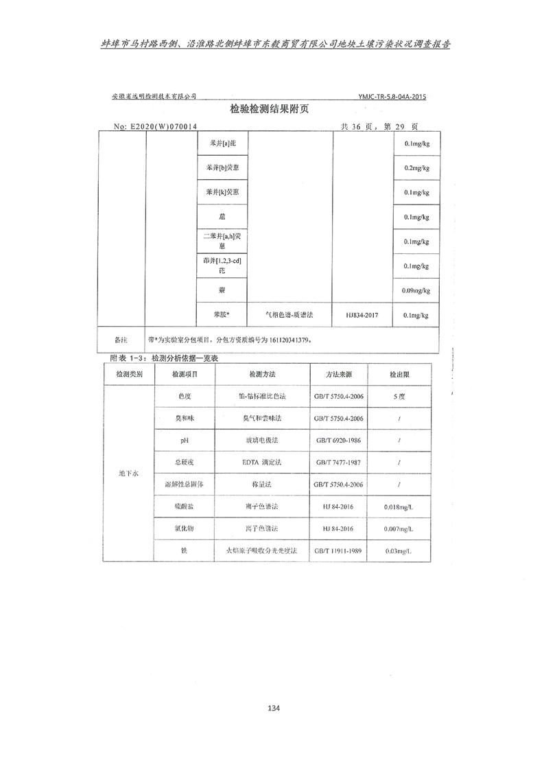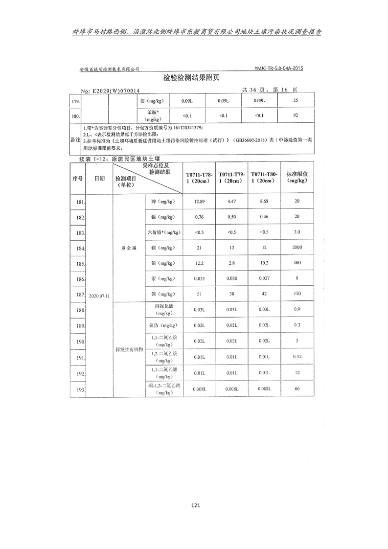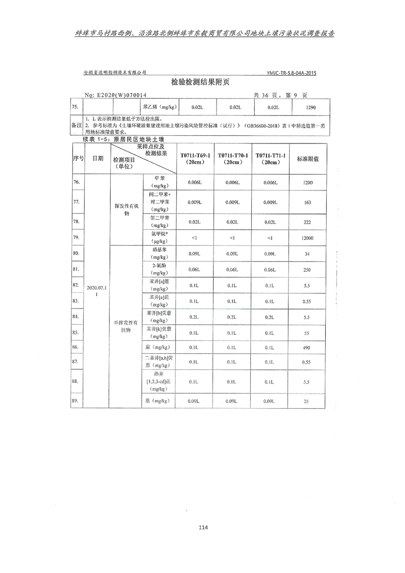 马村路西侧、沿淮路北侧蚌埠市东毅商贸有限公司地块土壤污染状况调查报告