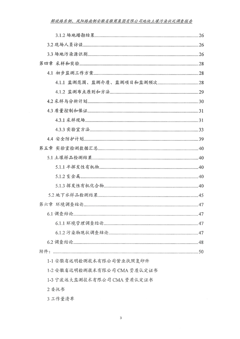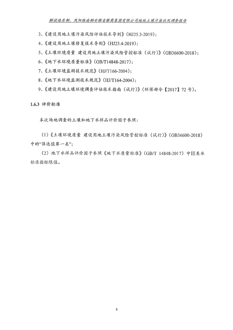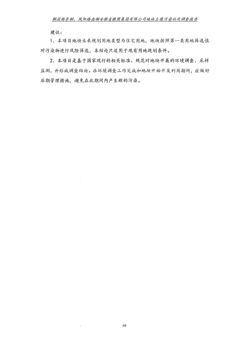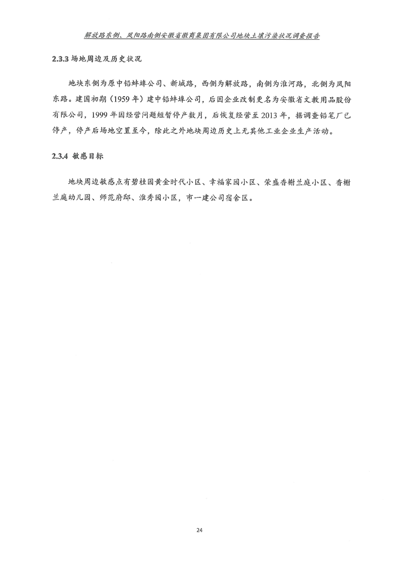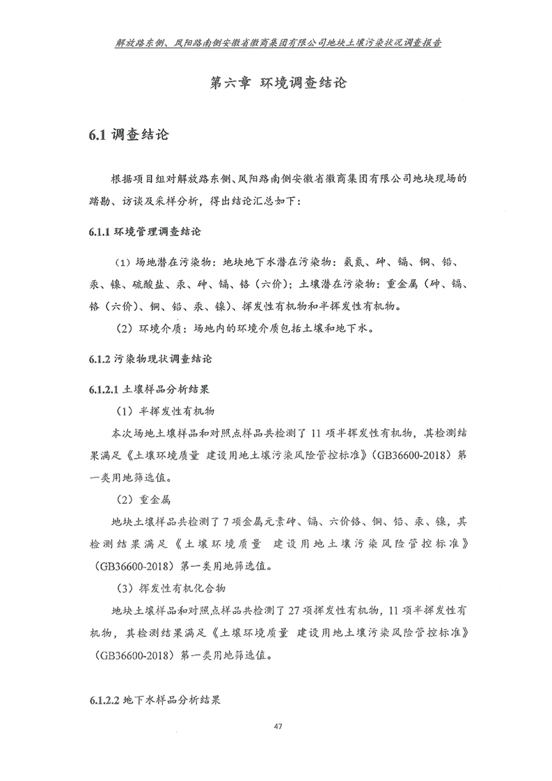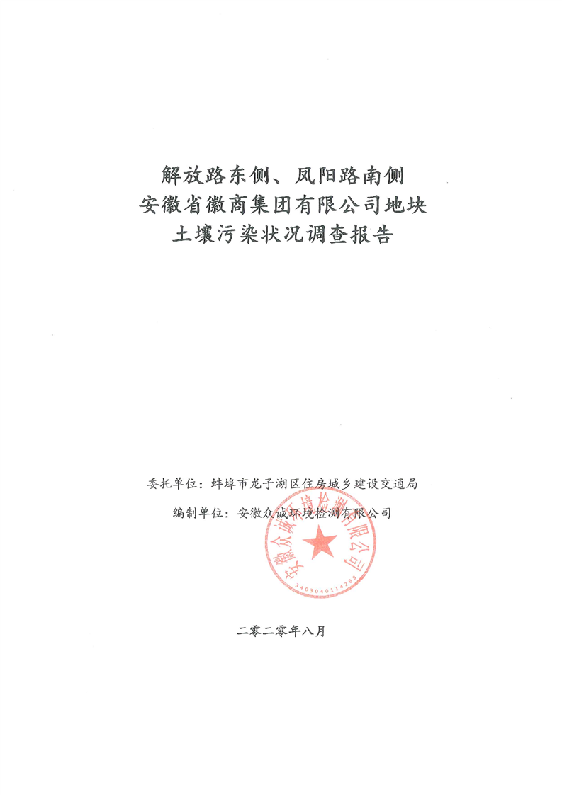解放路东侧、凤阳路南侧安徽省徽商集团有限公司地块土壤污染状况调查报告