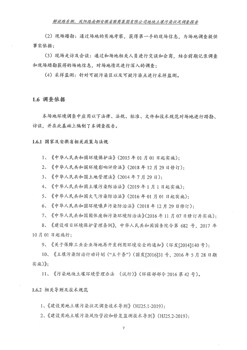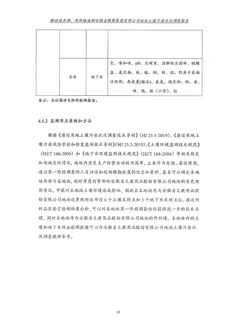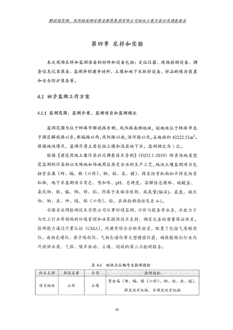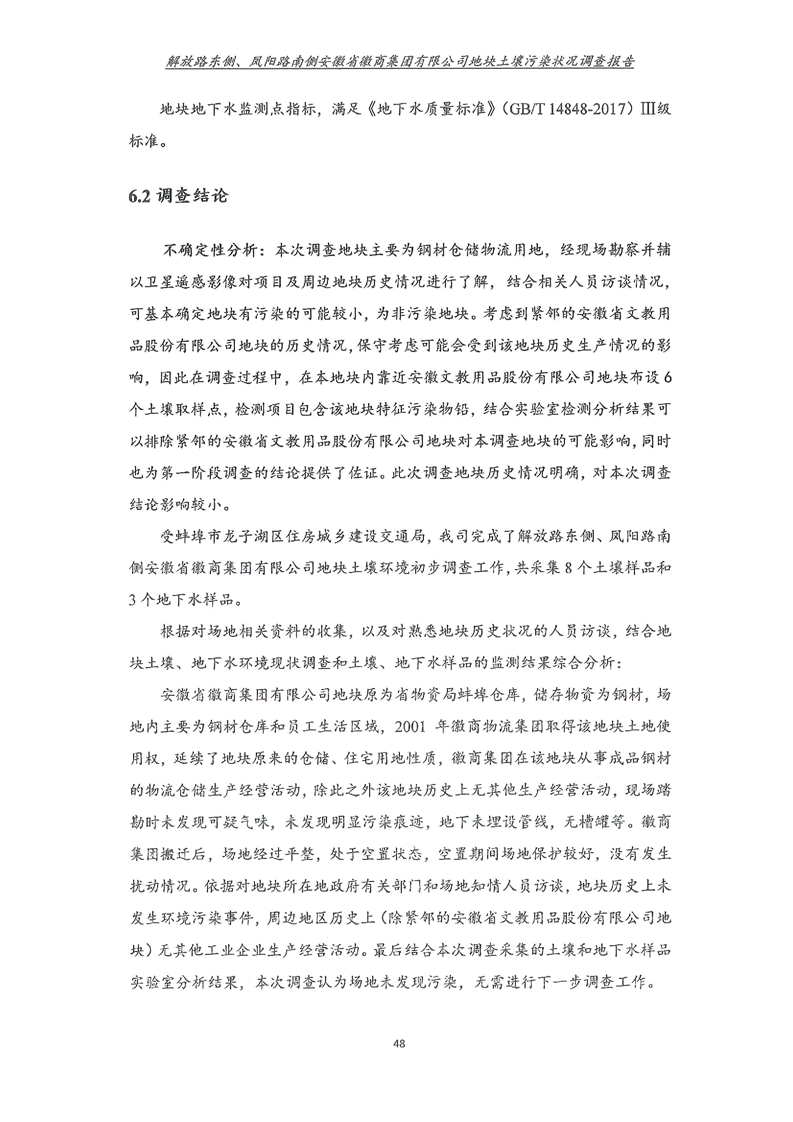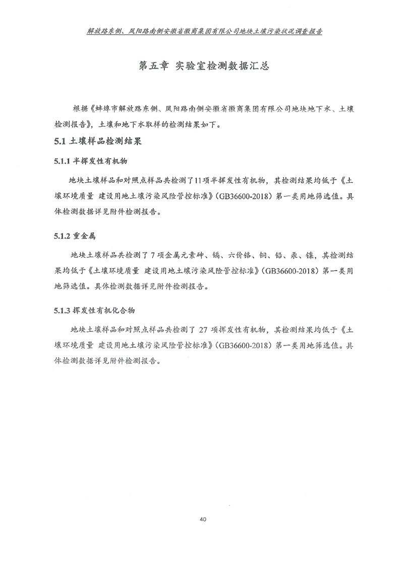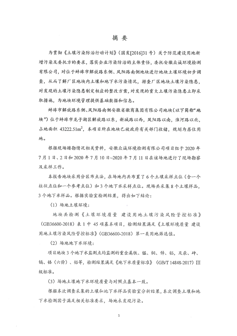 解放路东侧、凤阳路南侧安徽省徽商集团有限公司地块土壤污染状况调查报告