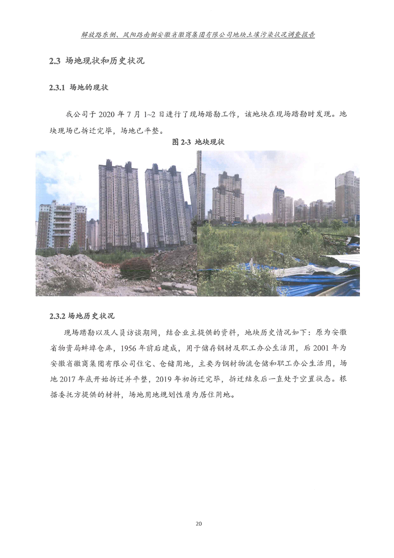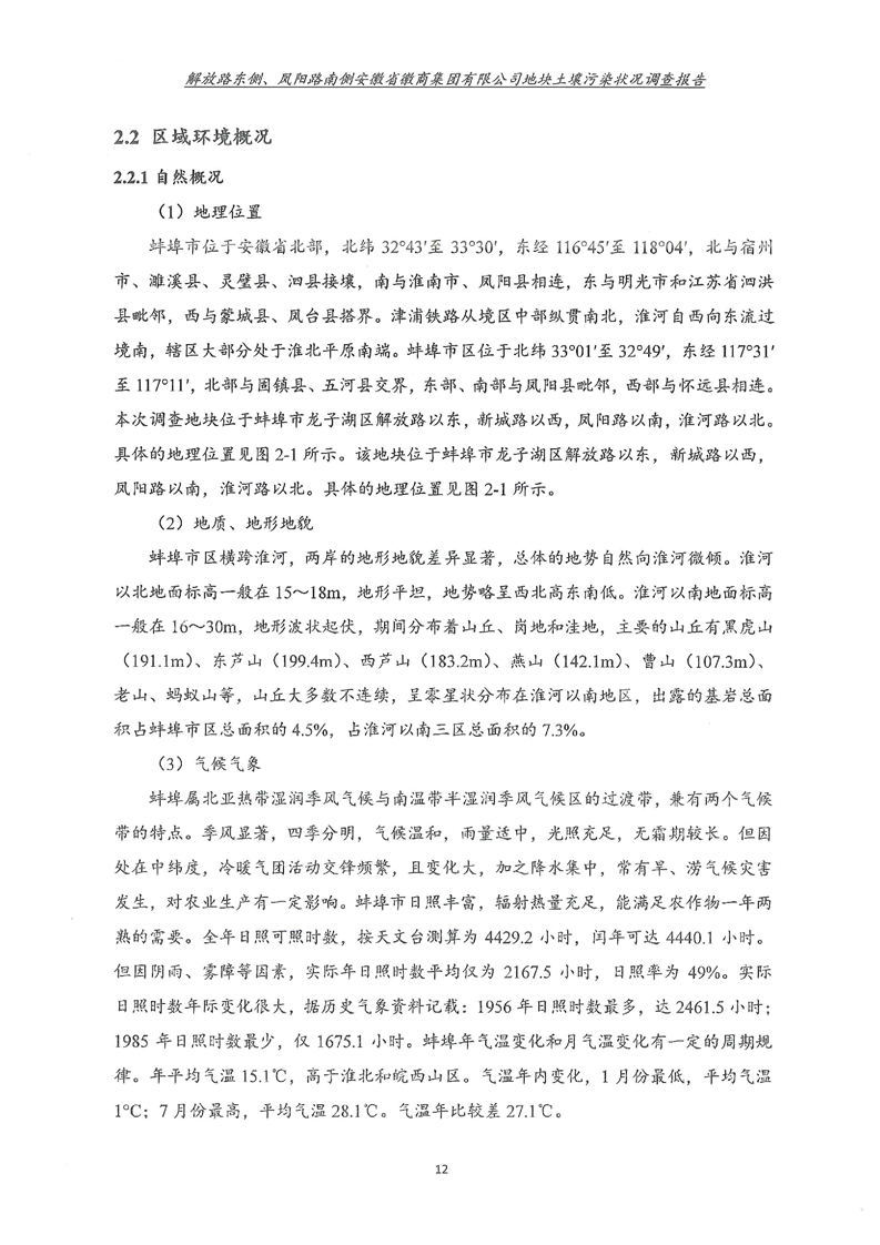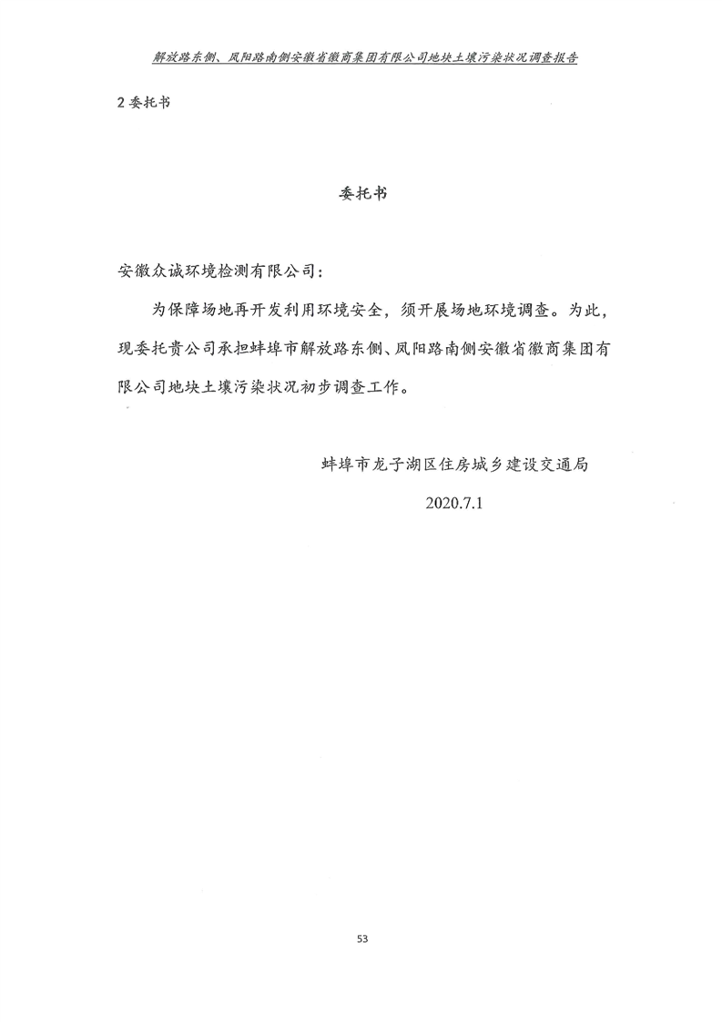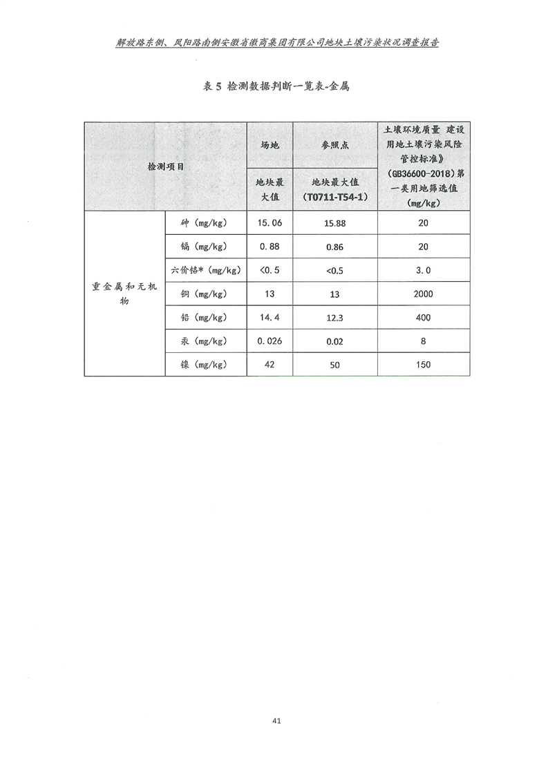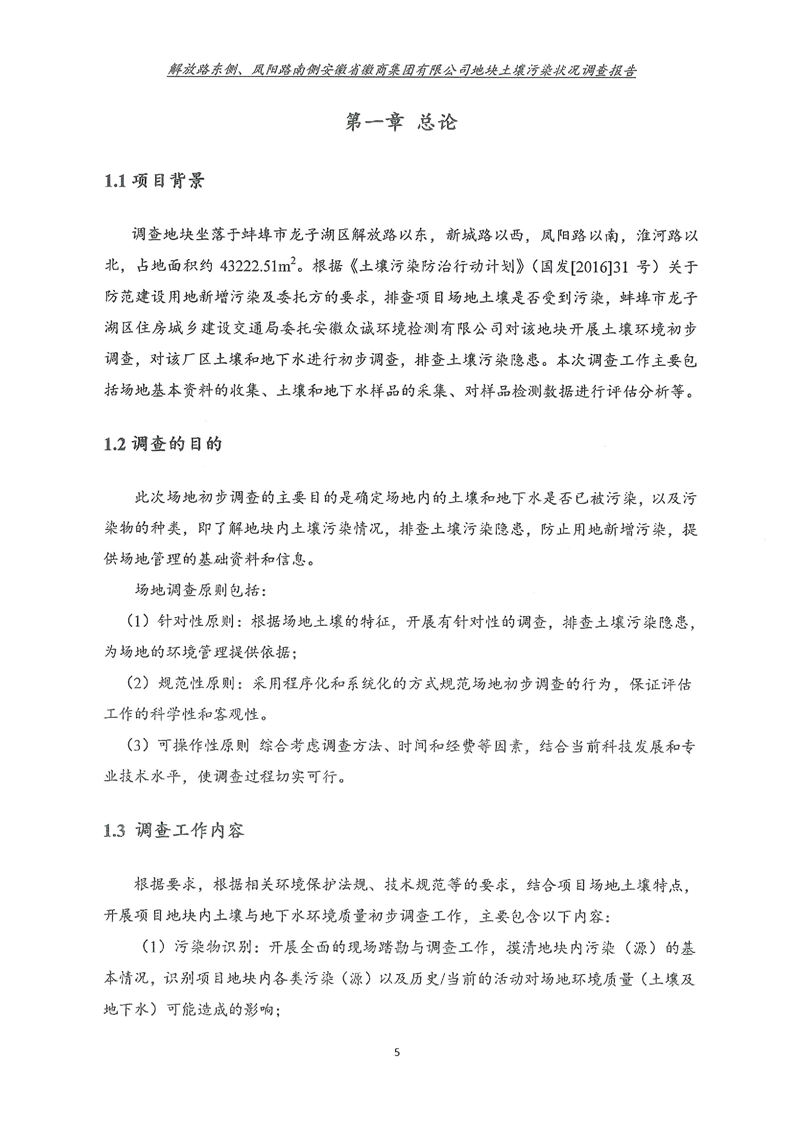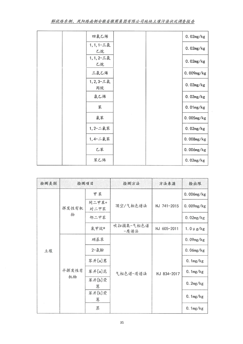 解放路东侧、凤阳路南侧安徽省徽商集团有限公司地块土壤污染状况调查报告