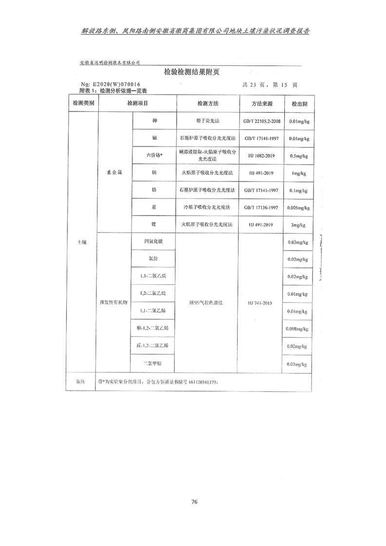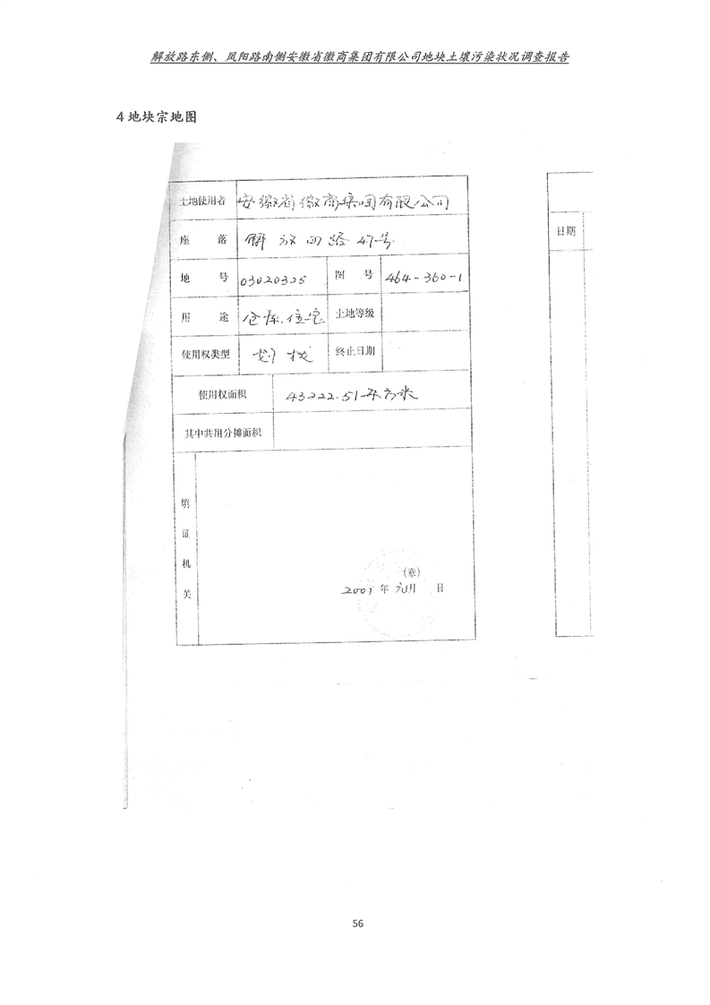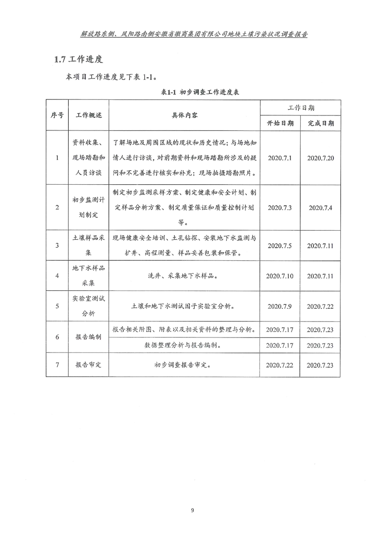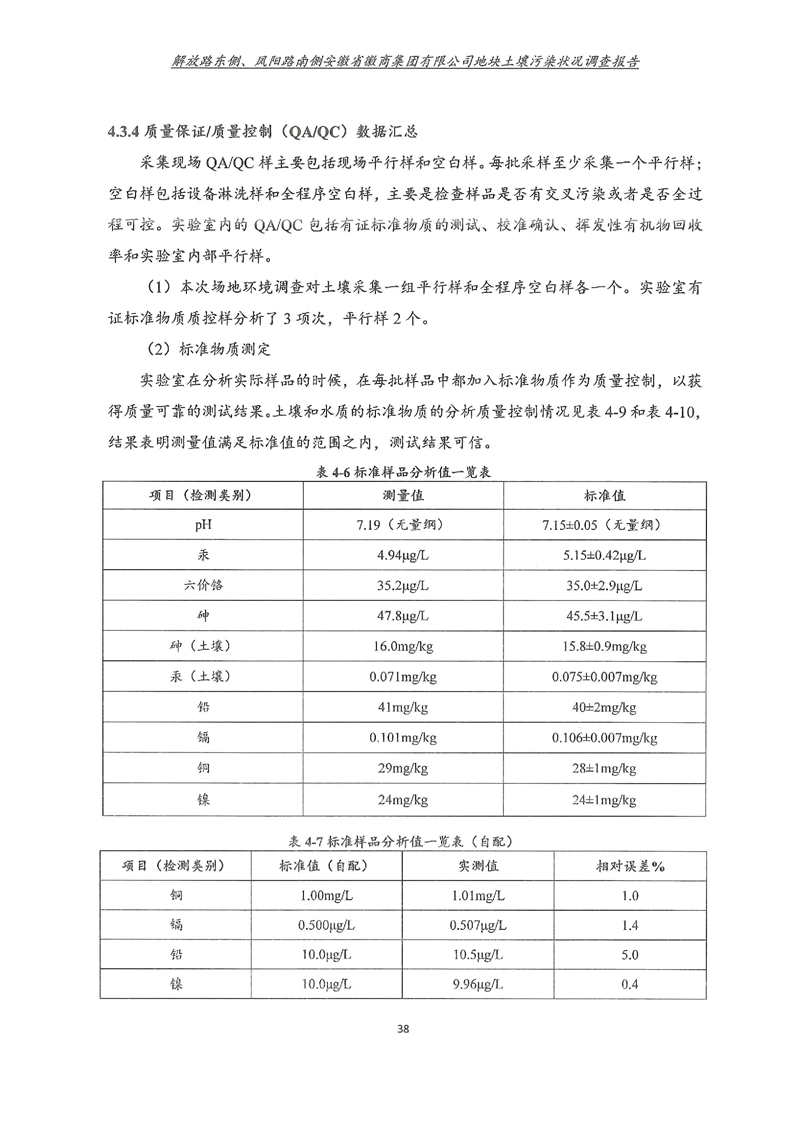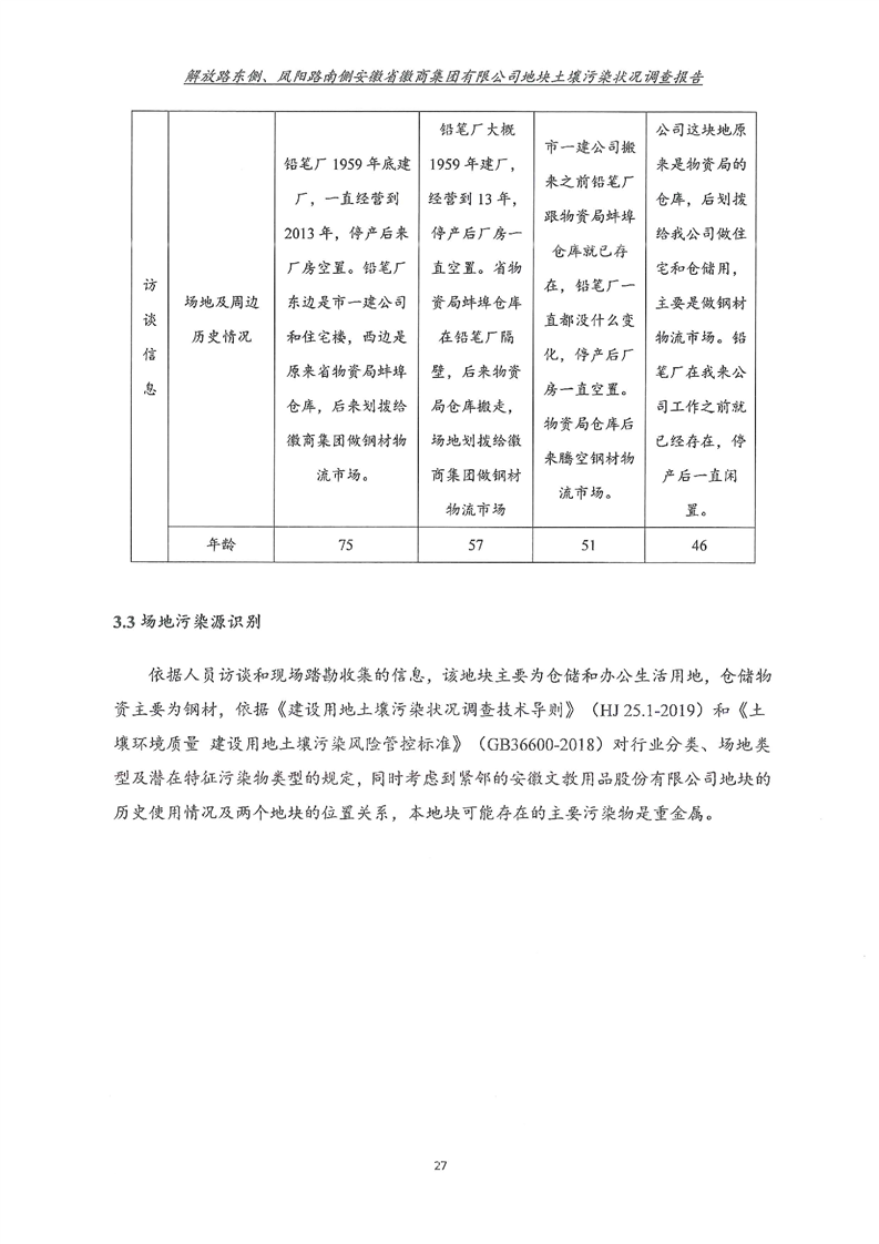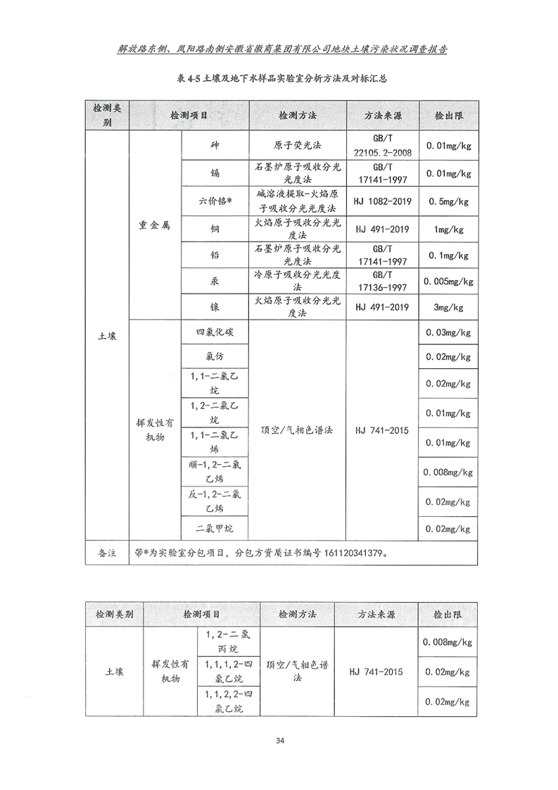 解放路东侧、凤阳路南侧安徽省徽商集团有限公司地块土壤污染状况调查报告