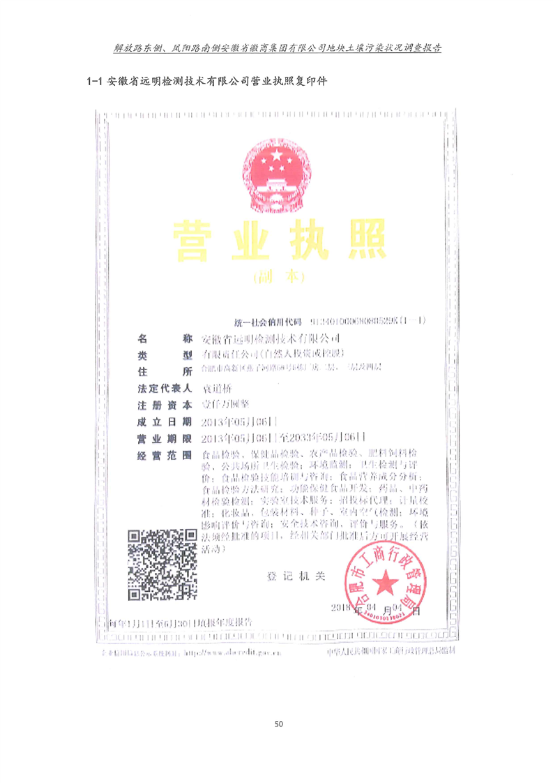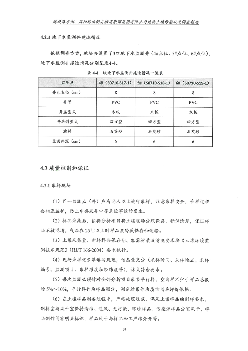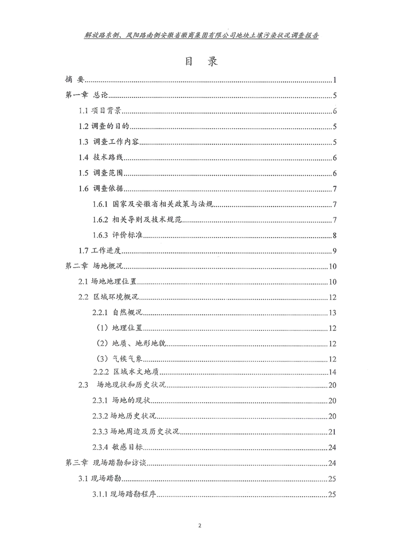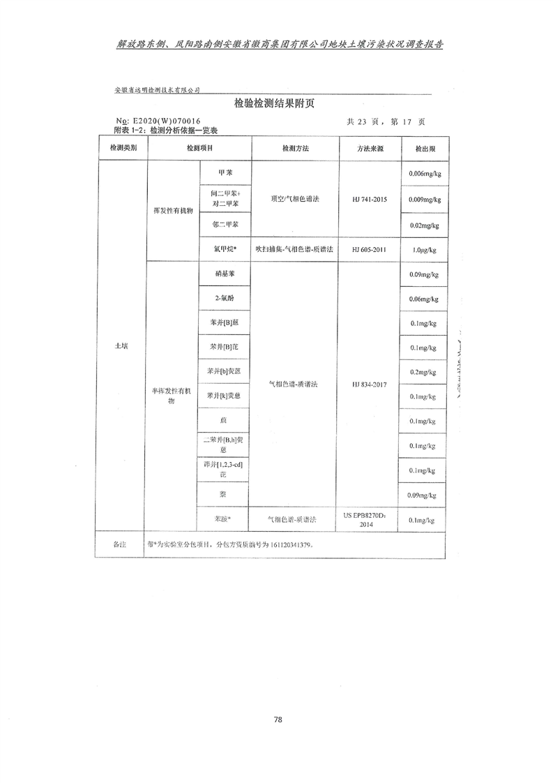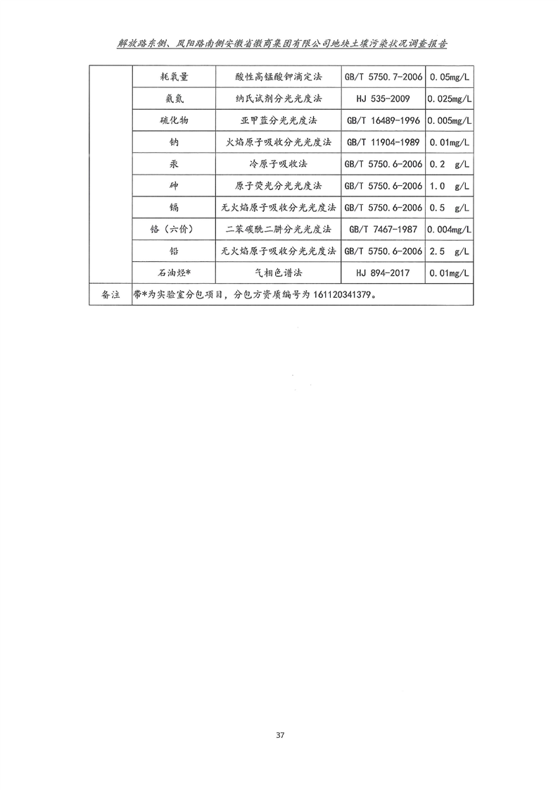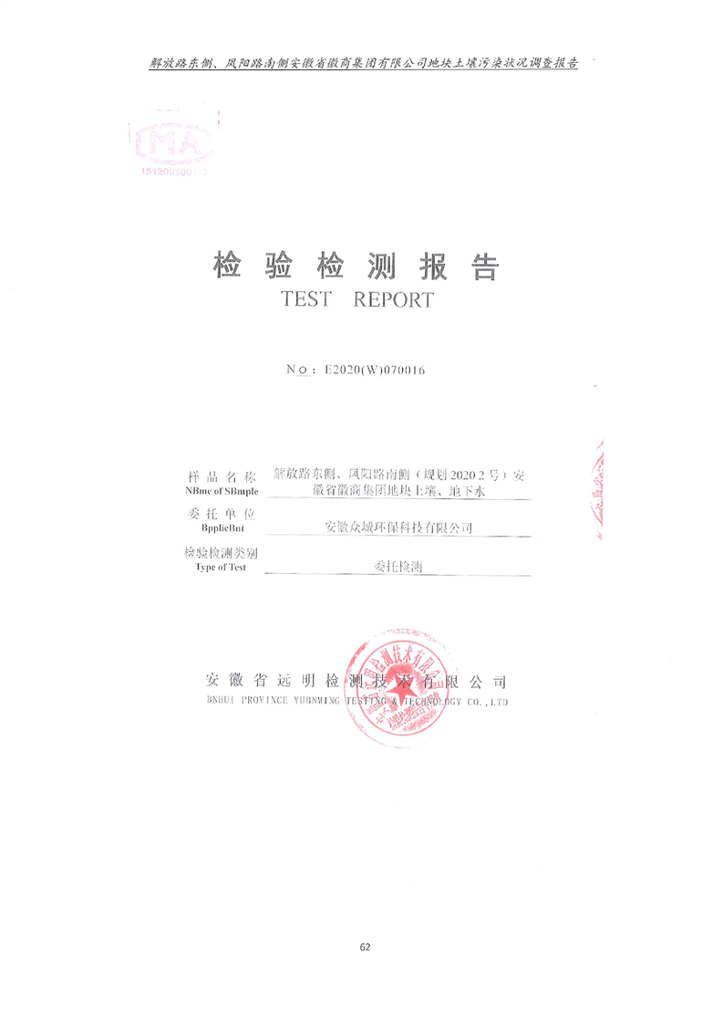 解放路东侧、凤阳路南侧安徽省徽商集团有限公司地块土壤污染状况调查报告