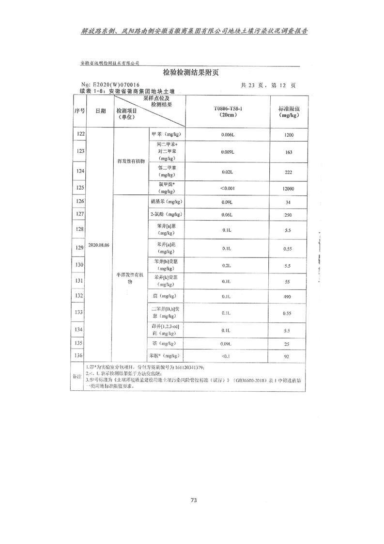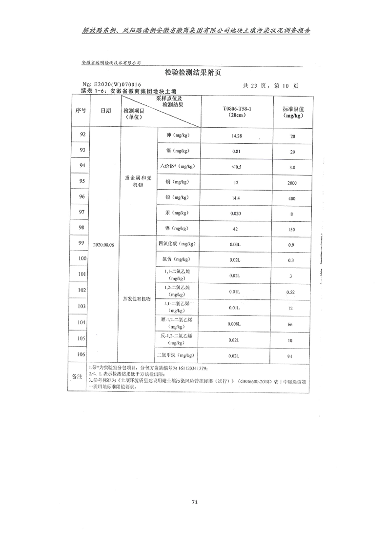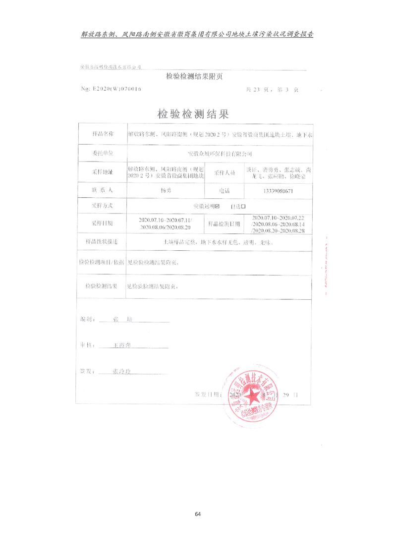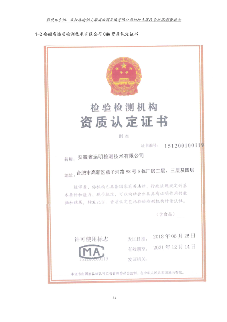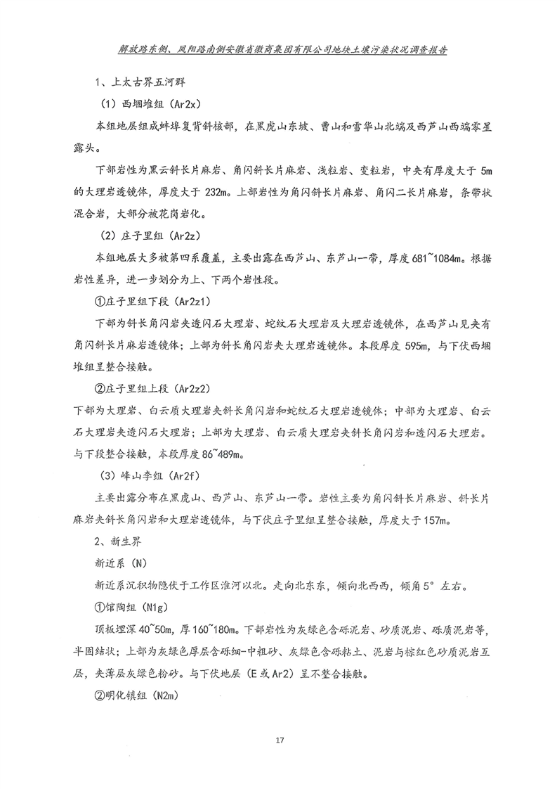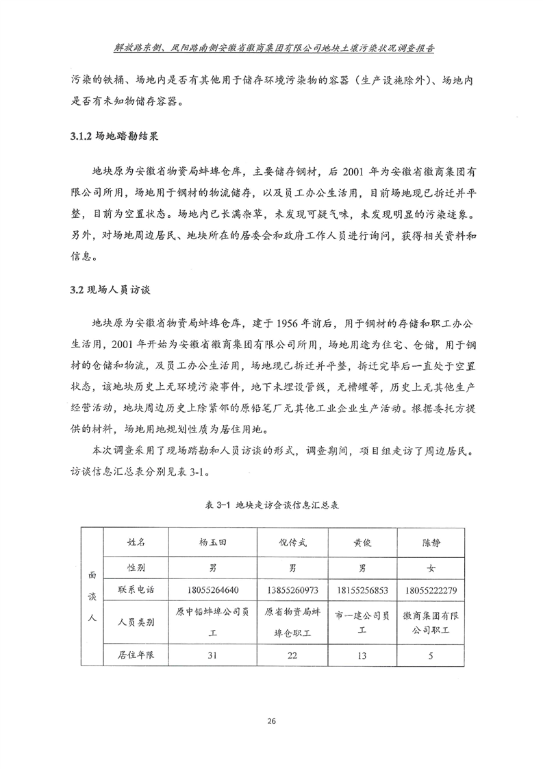 解放路东侧、凤阳路南侧安徽省徽商集团有限公司地块土壤污染状况调查报告