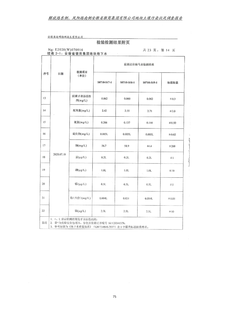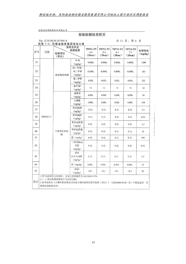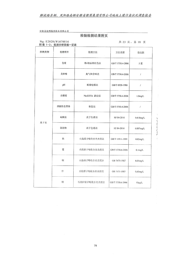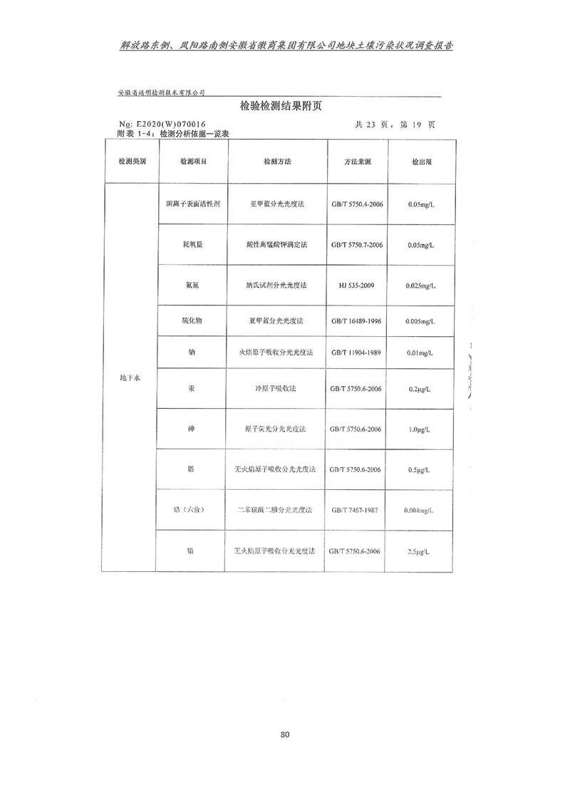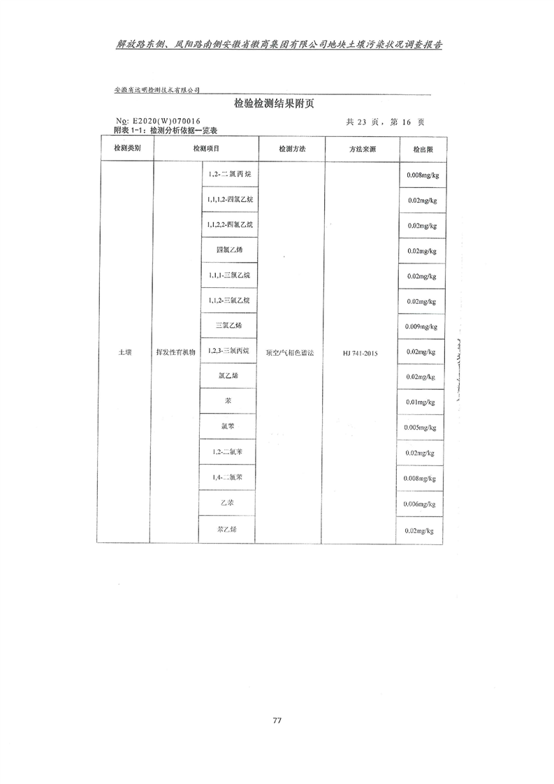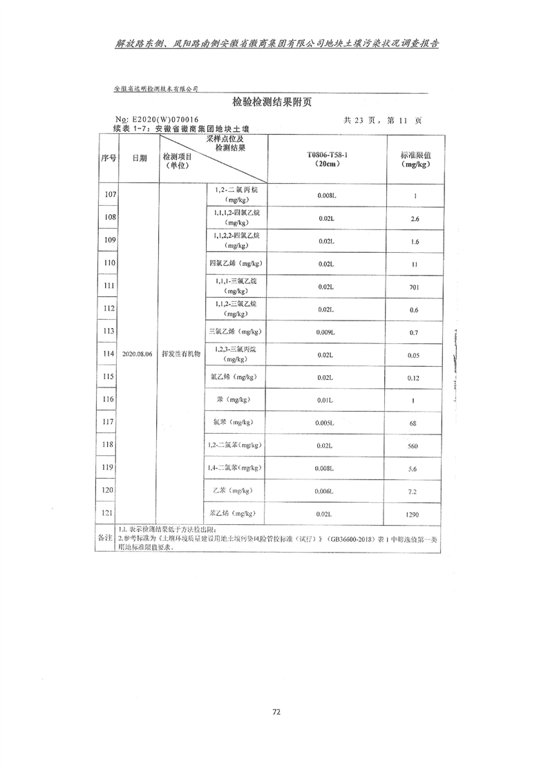 解放路东侧、凤阳路南侧安徽省徽商集团有限公司地块土壤污染状况调查报告